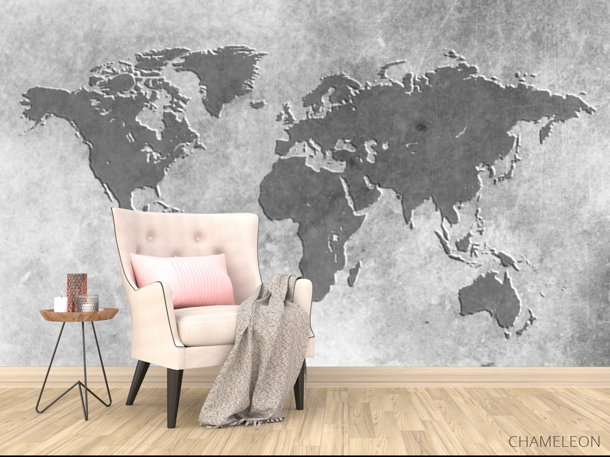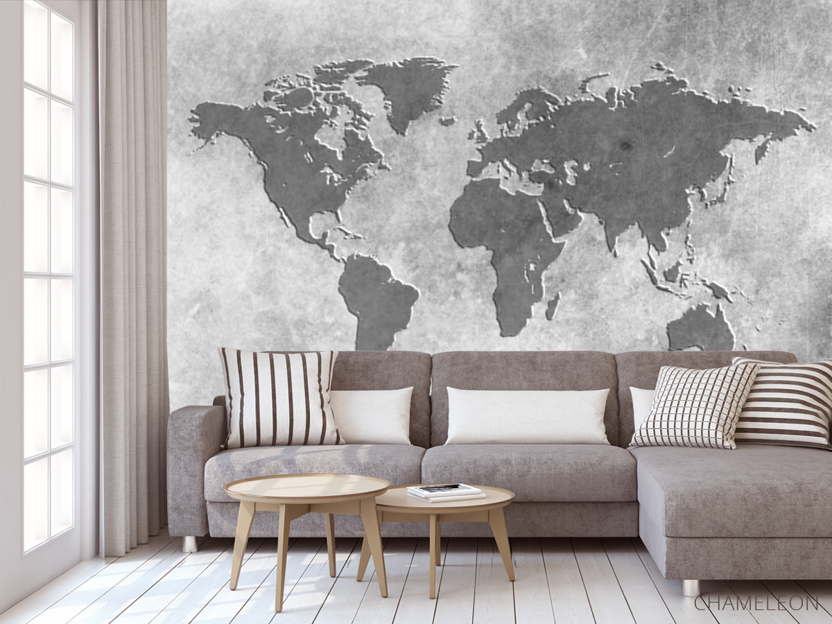 «Фотообои серая карта мира», (арт. 25201) - купить в интернет-магазине Chameleon