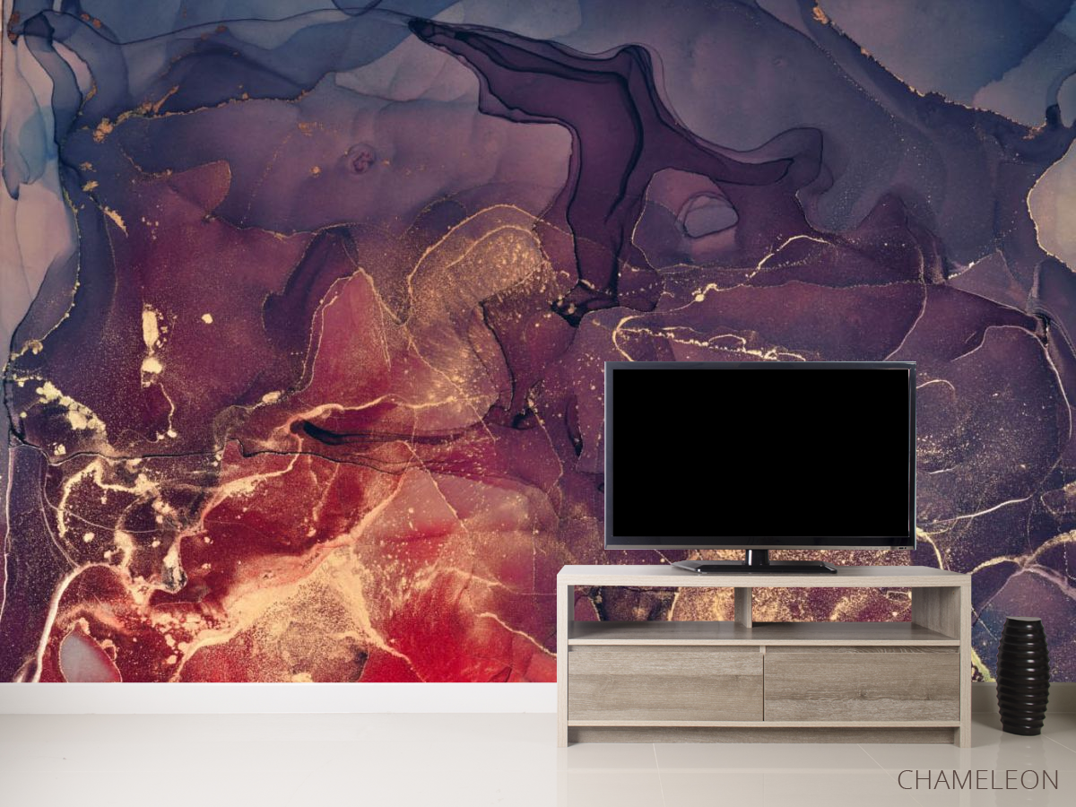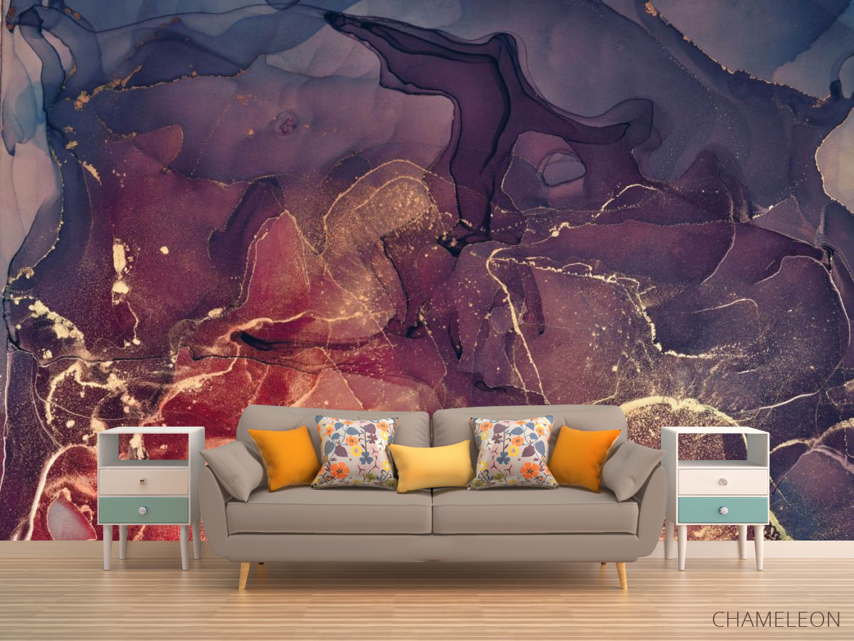 «Фотообои Золотой Fluid art с фиолетовым», (арт. 25277) - купить в интернет-магазине Chameleon