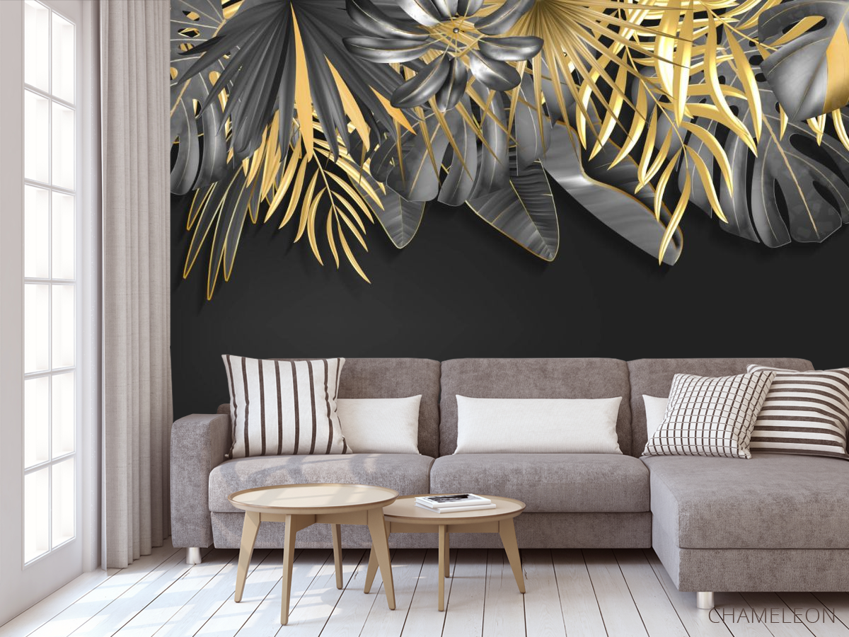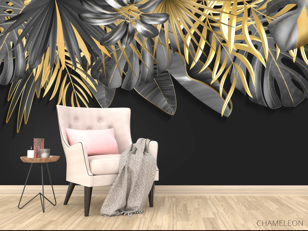 «Фотообои Золотые листья на черном», (арт. 25446) - купить в интернет-магазине Chameleon