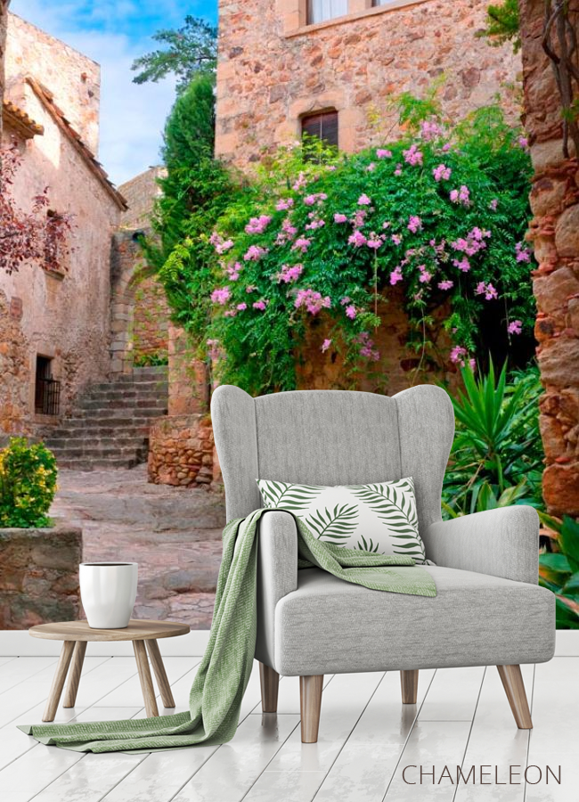 «Фотообои Ступеньки с цветами», (арт. 2550) - купить в интернет-магазине Chameleon