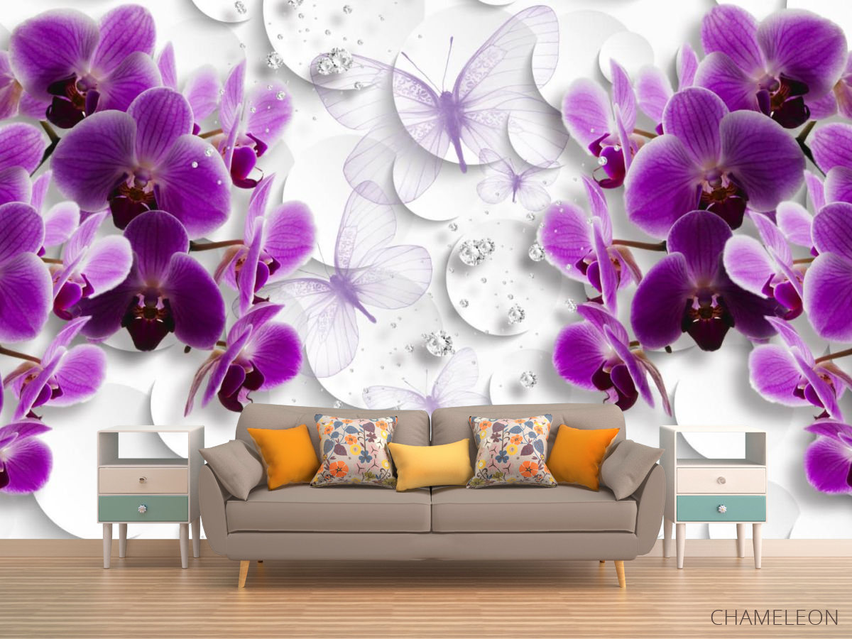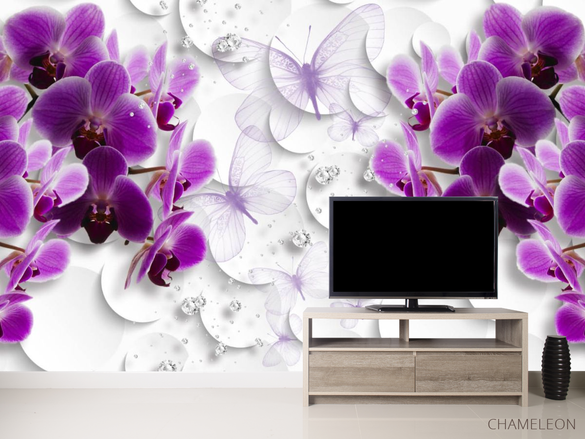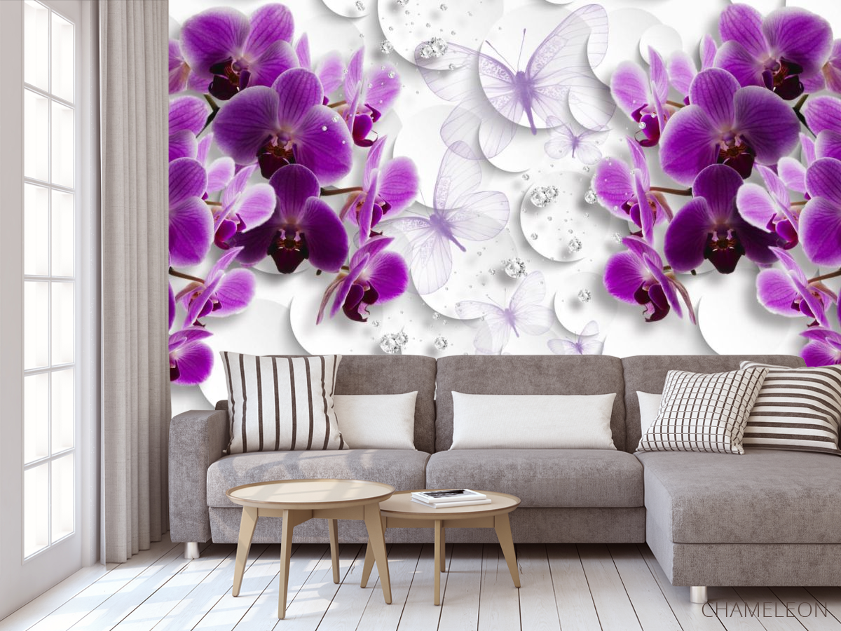 «Фотообои Фиолетовые 3д орхидеи», (арт. 25575) - купить в интернет-магазине Chameleon