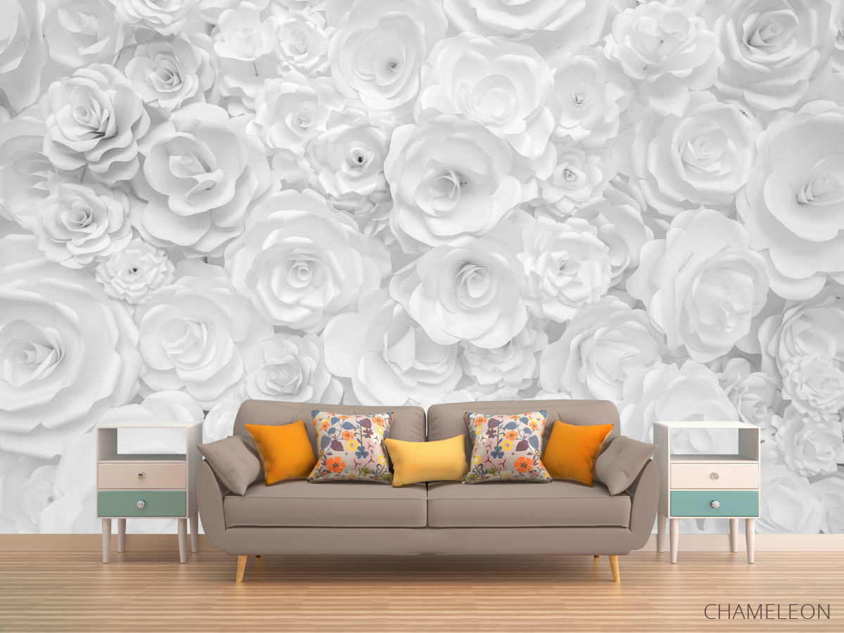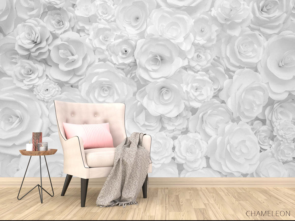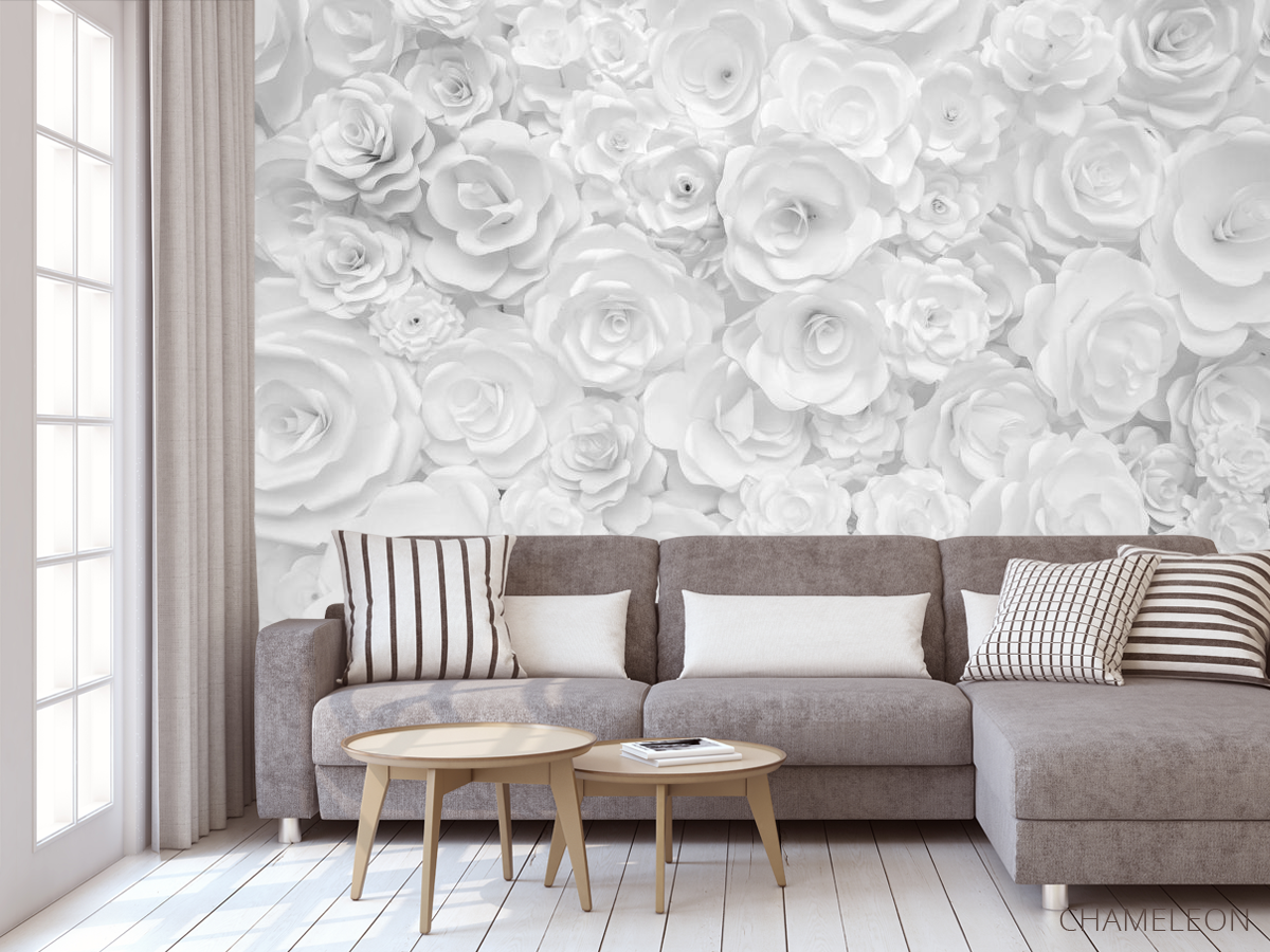 «Фотообои Белая стена из бумажных цветов», (арт. 25630) - купить в интернет-магазине Chameleon