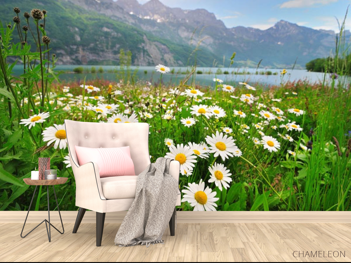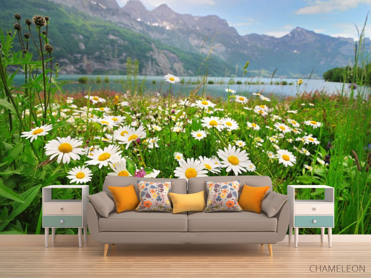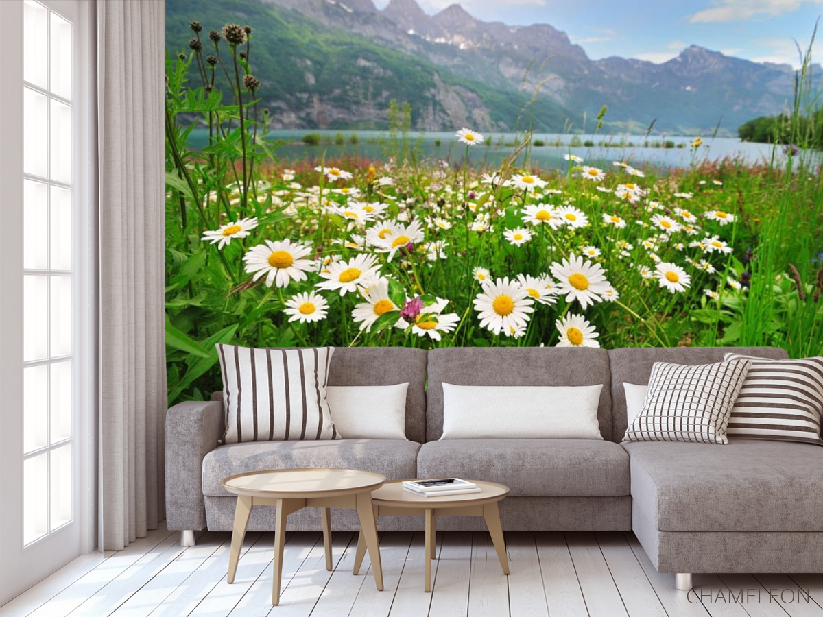 «Фотообои ромашки и горы», (арт. 25795) - купить в интернет-магазине Chameleon