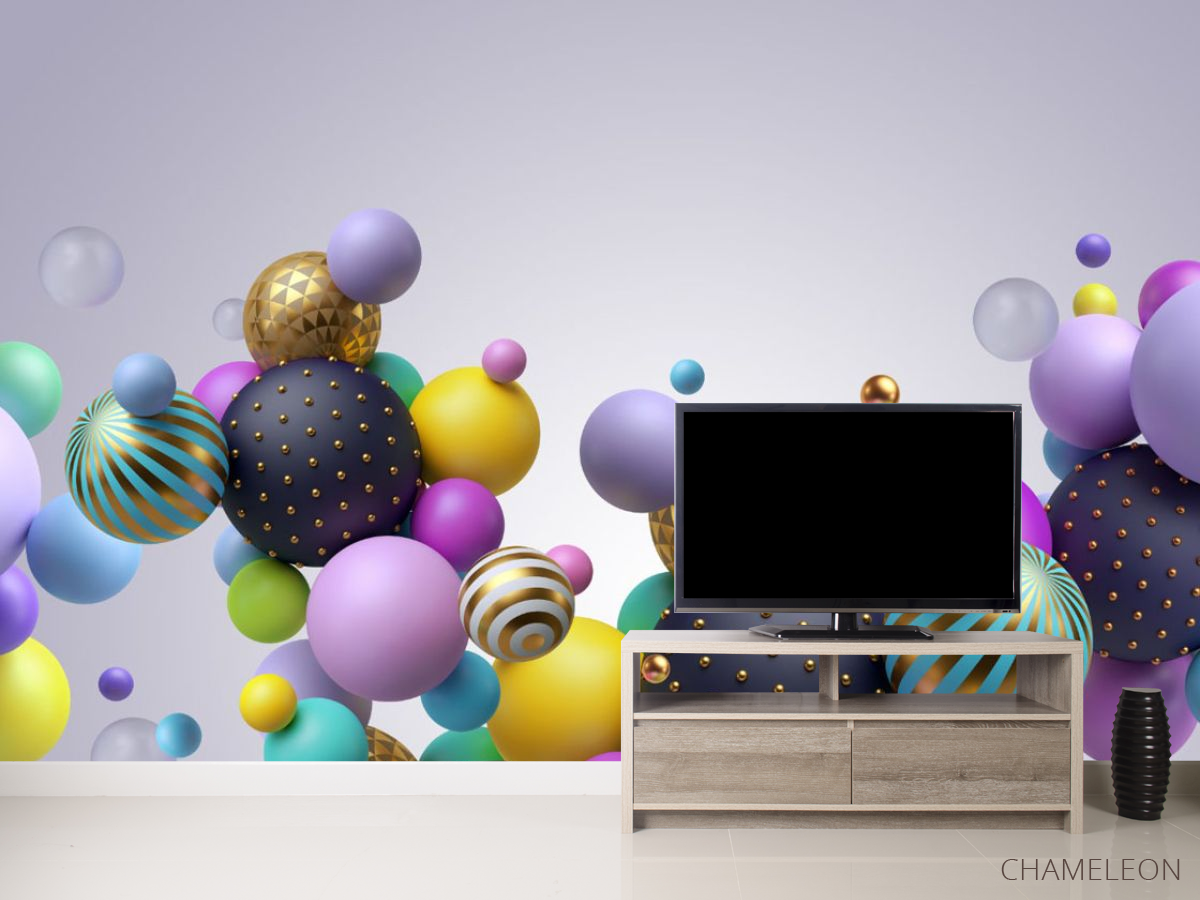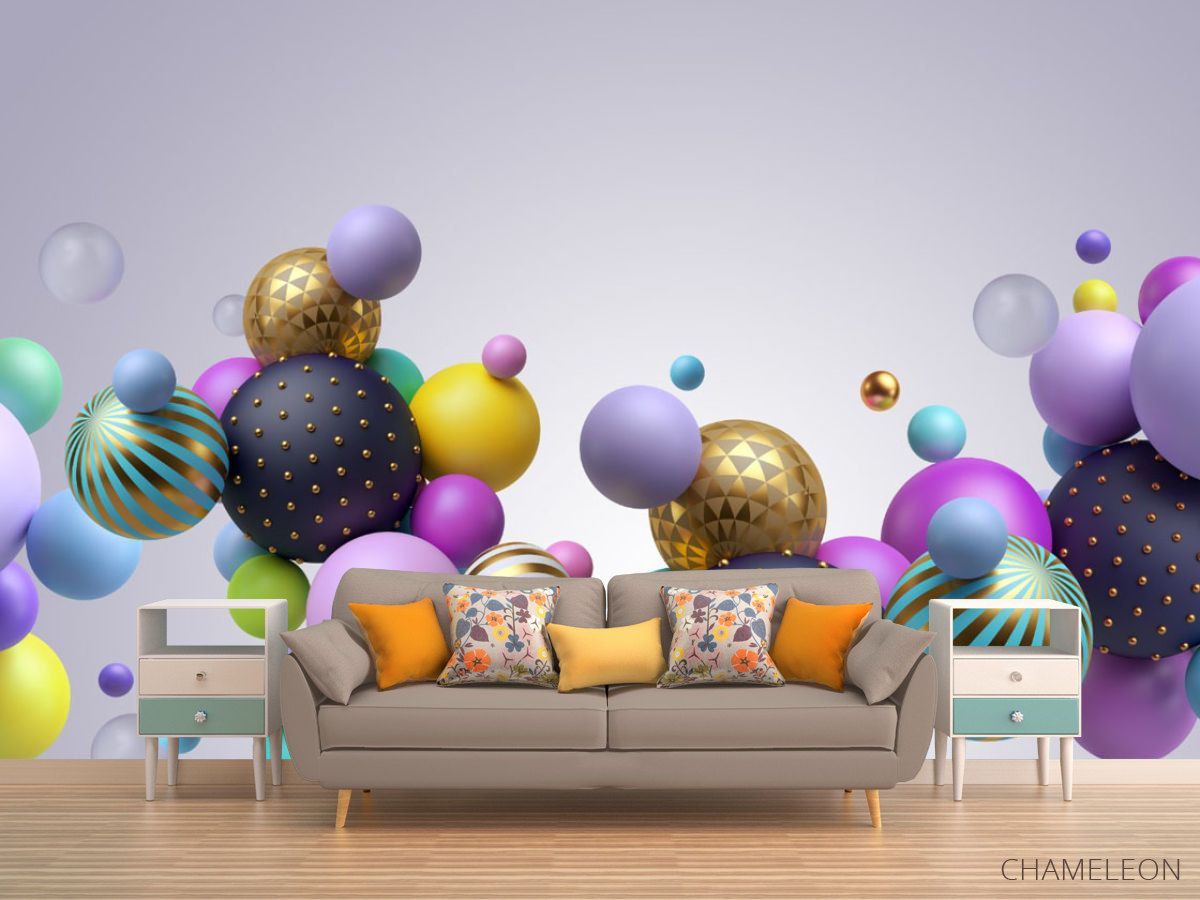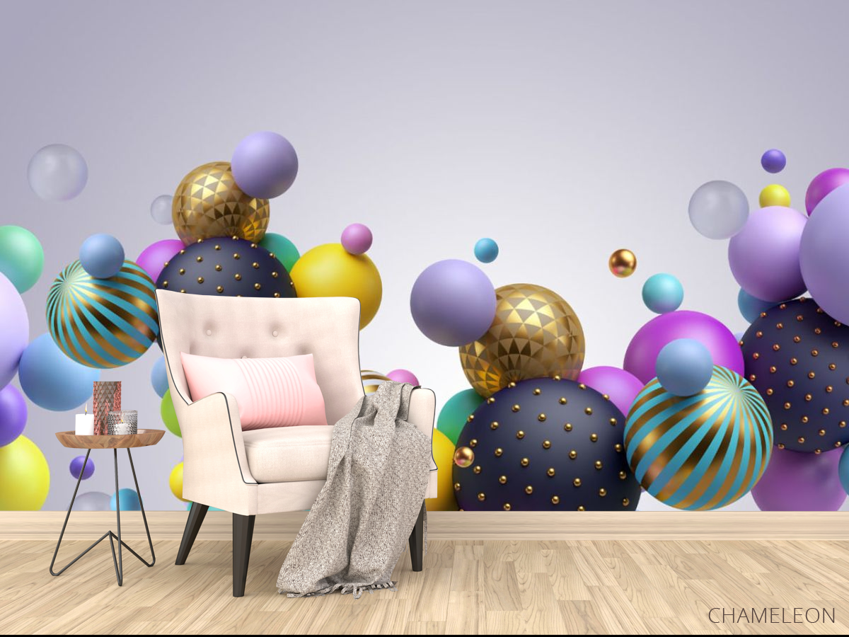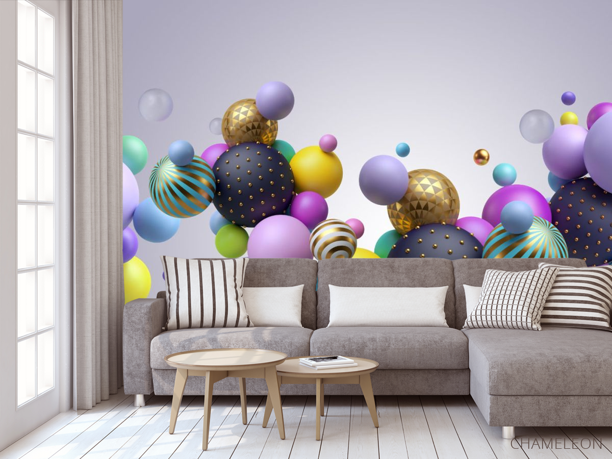 «Фотообои цветные шары 3д с золотом», (арт. 26054g) - купить в интернет-магазине Chameleon