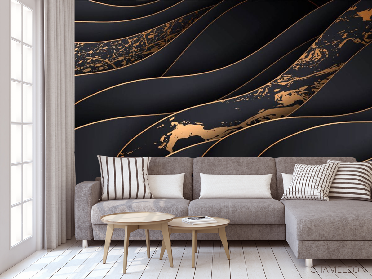 «Фотообои Золотые абстрактные волны», (арт. 26193) - купить в интернет-магазине Chameleon