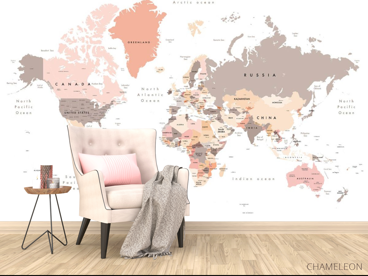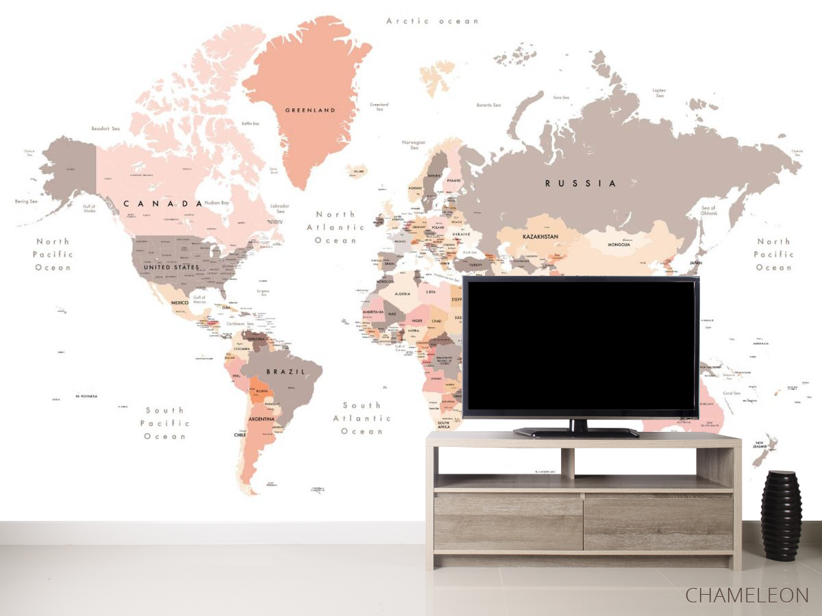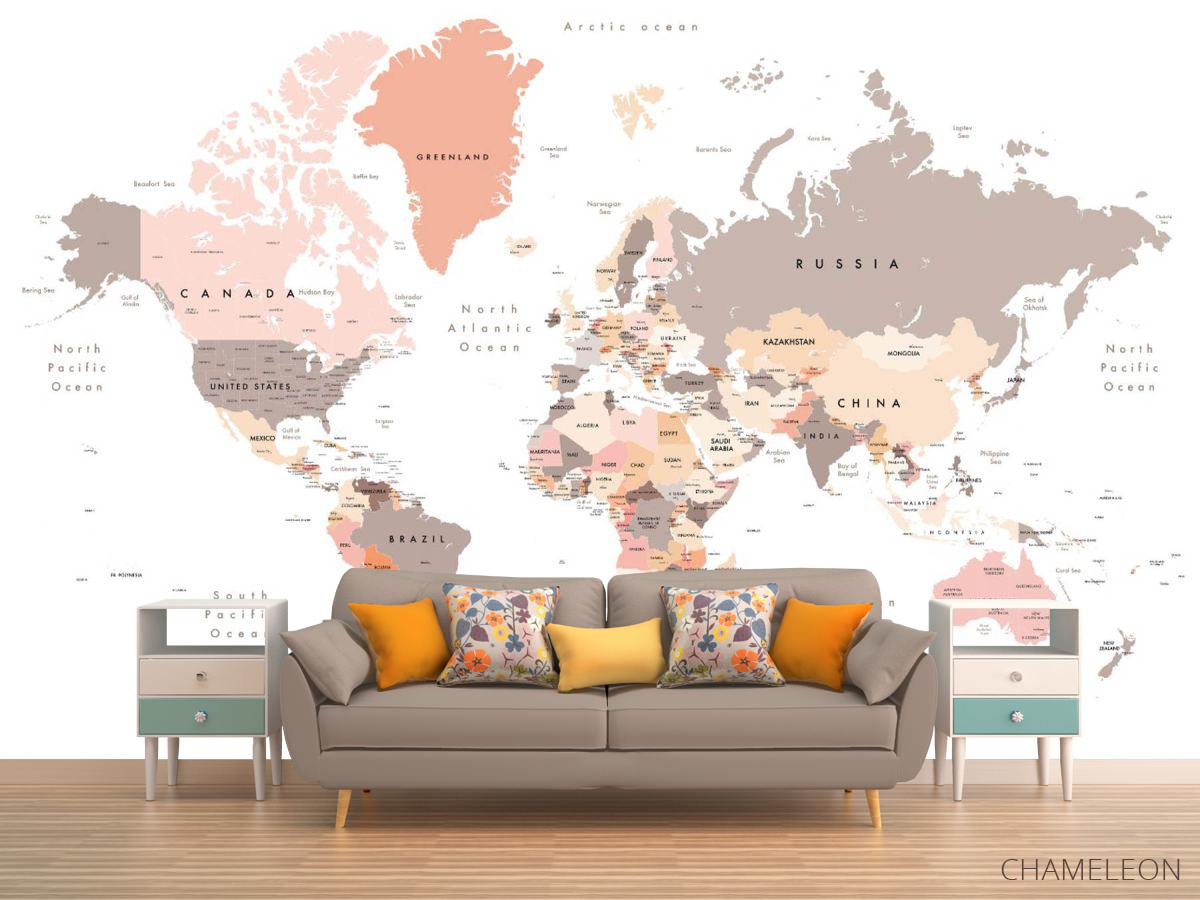 Фотообои карта мира являются очень хорошим выбором как для дома (в гостиную, рабочий кабинет или кухню), так и для других зданий (в школу, ресторан или салон красоты). Они выглядят роскошно, имеют стильный дизайн и отлично подходят под любое оформление комнаты. Современные фотообои на стену производятся из надежного материала, который не портится и не царапается. Изображение - это полностью безопасная краска, которая не вызывает аллергии, а также остается красивым в течение многих лет. Вы можете уверенно использовать обои, которые украсят любое помещение. Купить стильные и оригинальные фотообои с картой мира можно в интернет-магазине Chameleons.