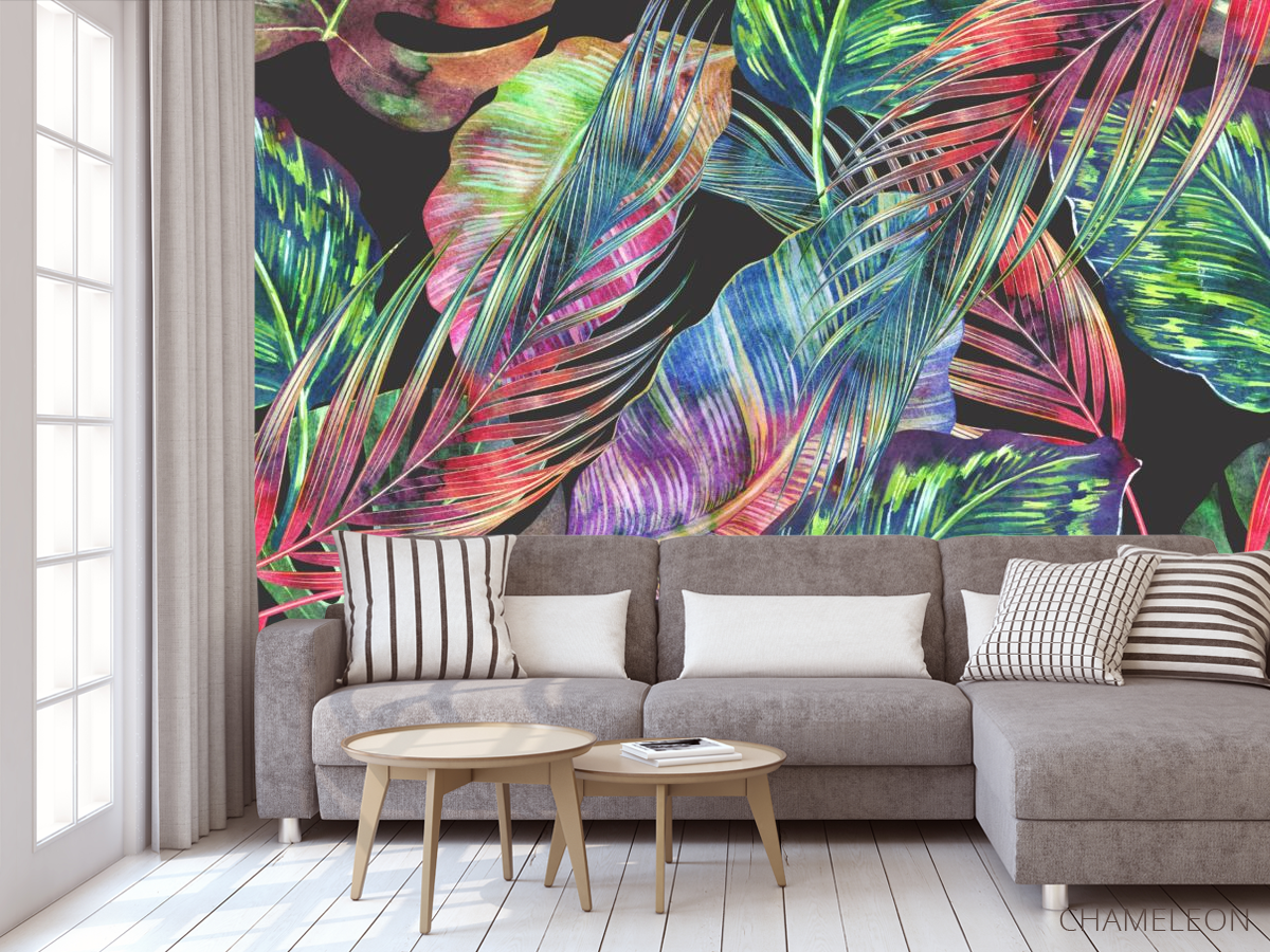 Современный интерьер в большинстве случаев исполнен из пастельных оттенков и порой хочется внести в них немного яркости. Фотообои тропические листья станут отличным решениям для тех, кто желает разбавить стиль комнаты и придать ему природной бодрости, красочности и создать атмосферу жарких стран. Такие обои чудесно впишутся в обстановку спальни, кухни или гостиной. Фотообои Тропические листья добавят в дом комфорта и уюта, а также будут радовать глаз на протяжении многих лет. Обои изготовлены из материалов высокого качества, не вызывают аллергию и не выгорают на солнце. Вы можете выбрать бумажную или флизилиновую основу, но вне зависимости от этого, клеить их абсолютно легко: достаточно лишь нанести клей на стену и прикрепить полотно.