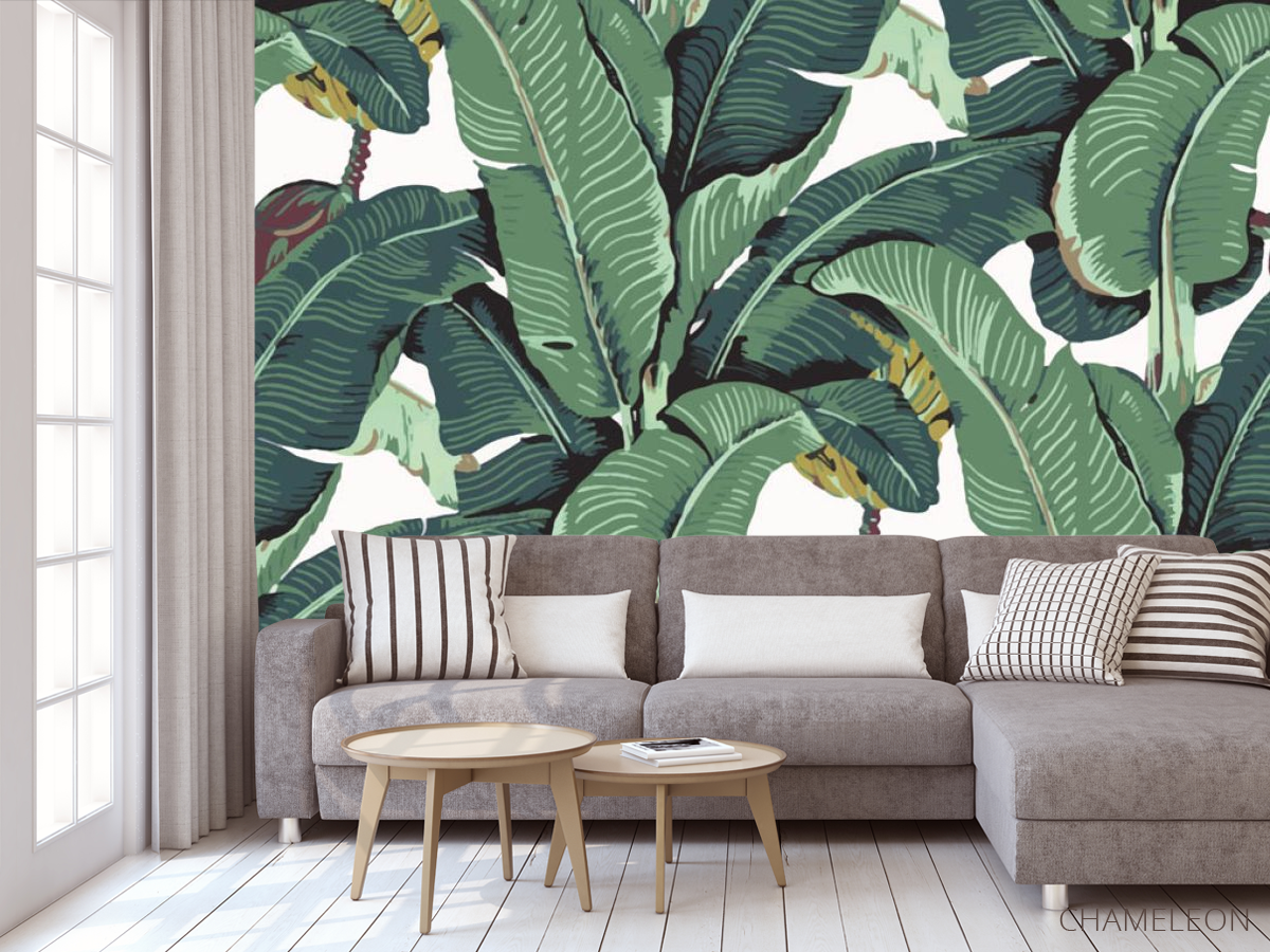 Современный интерьер в большинстве случаев исполнен из пастельных оттенков и порой хочется внести в них немного яркости. Фотообои тропические листья станут отличным решениям для тех, кто желает разбавить стиль комнаты и придать ему природной бодрости, красочности и создать атмосферу жарких стран. Такие обои чудесно впишутся в обстановку спальни, кухни или гостиной. Фотообои Тропические листья добавят в дом комфорта и уюта, а также будут радовать глаз на протяжении многих лет. Обои изготовлены из материалов высокого качества, не вызывают аллергию и не выгорают на солнце. Вы можете выбрать бумажную или флизилиновую основу, но вне зависимости от этого, клеить их абсолютно легко: достаточно лишь нанести клей на стену и прикрепить полотно.