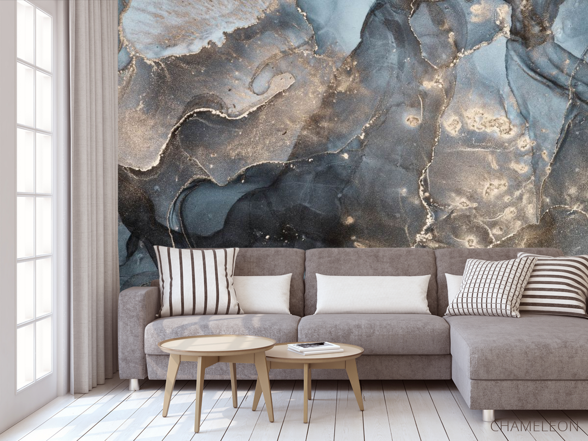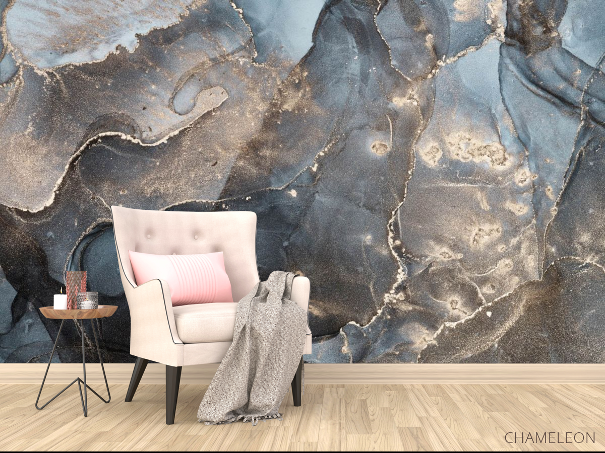 «Фотообои Серый Fluid art с золотом», (арт. 26425) - купить в интернет-магазине Chameleon