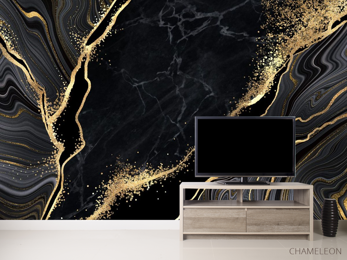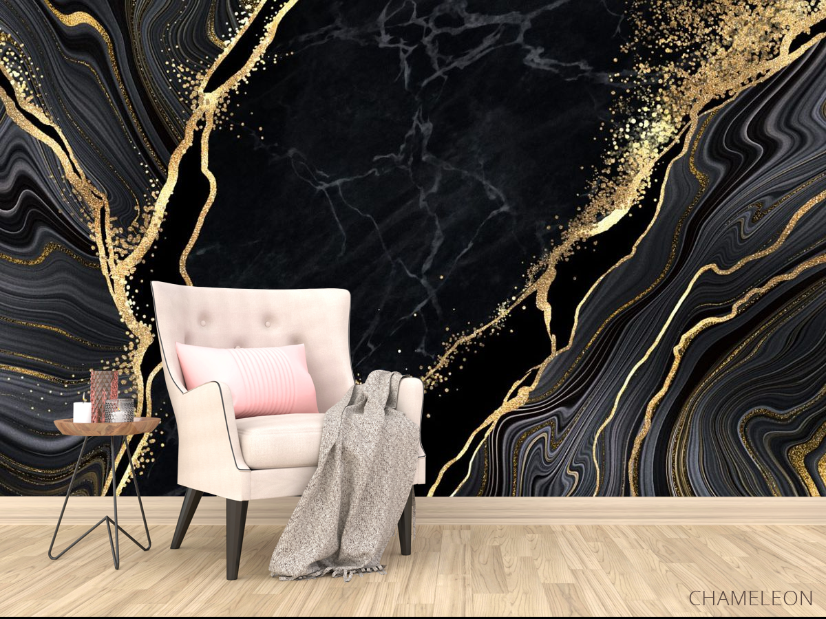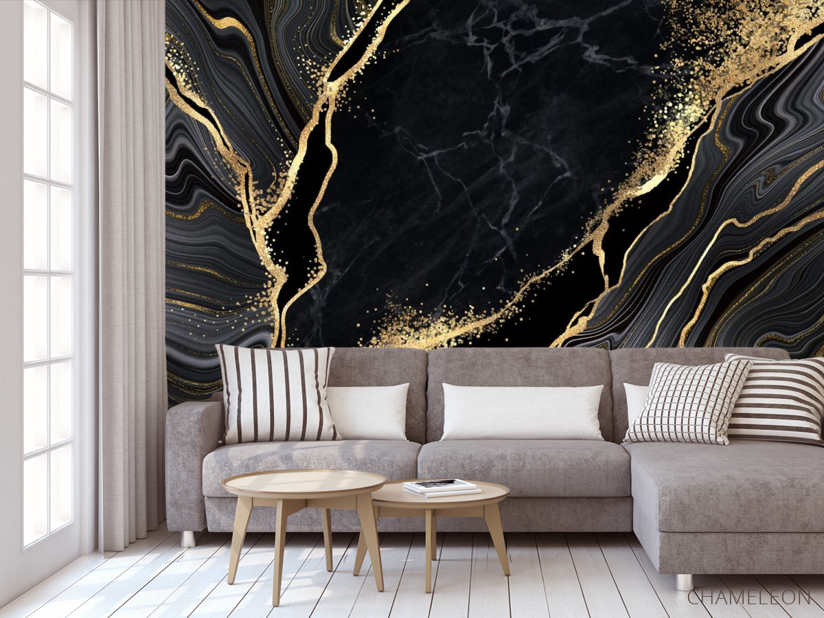 «Фотообои черный мрамор с золотом», (арт. 26681g) - купить в интернет-магазине Chameleon