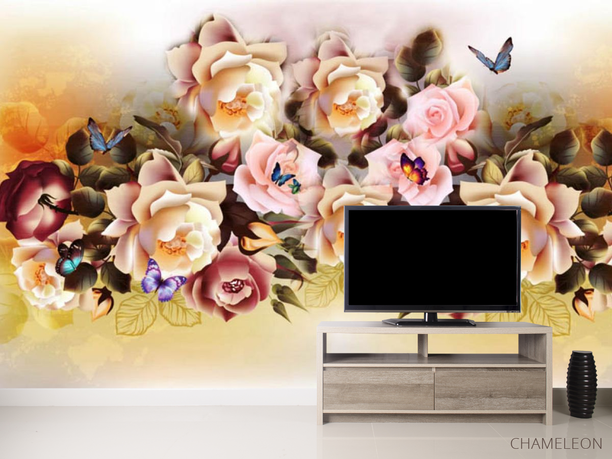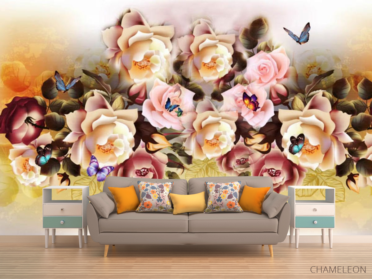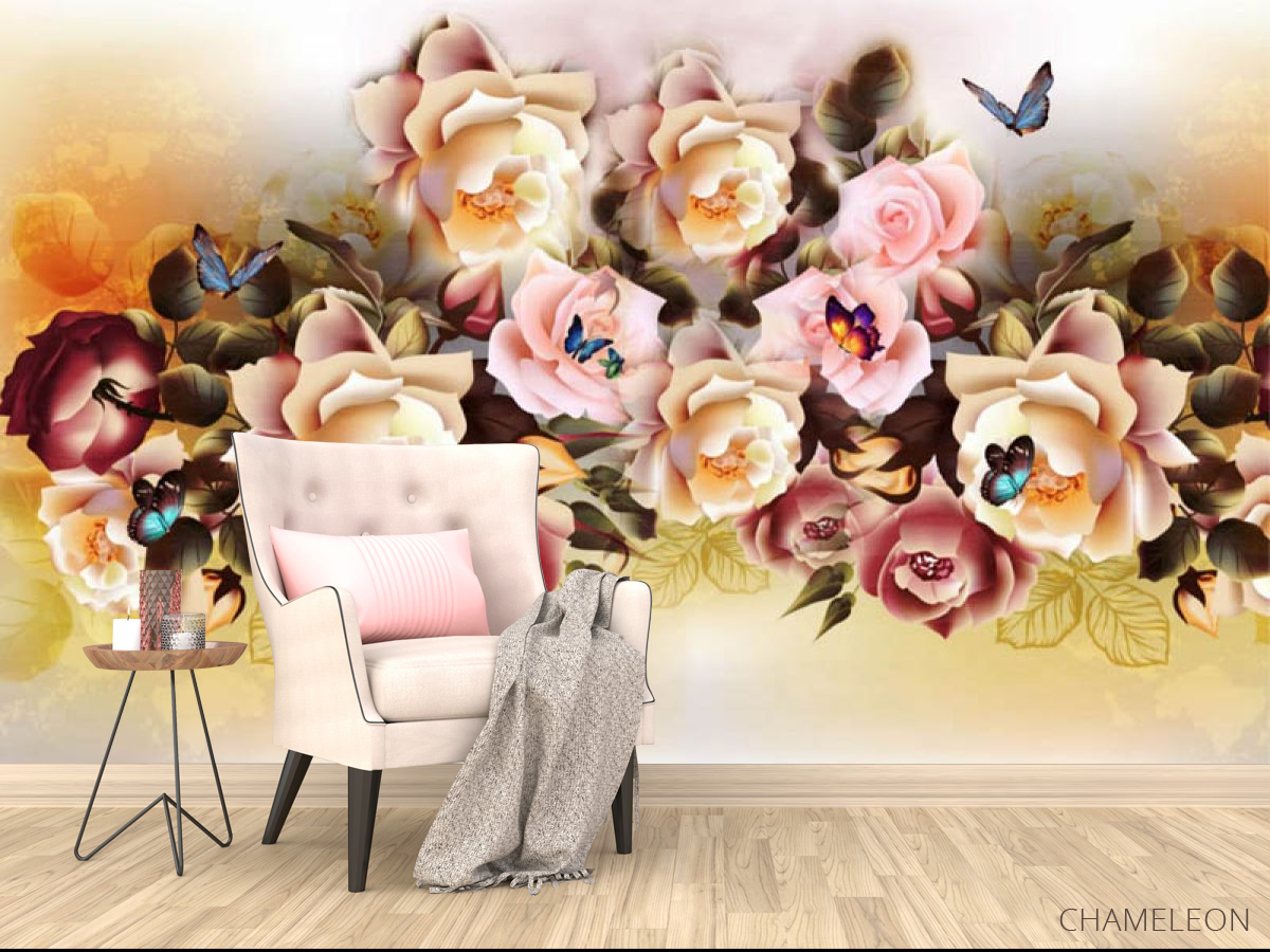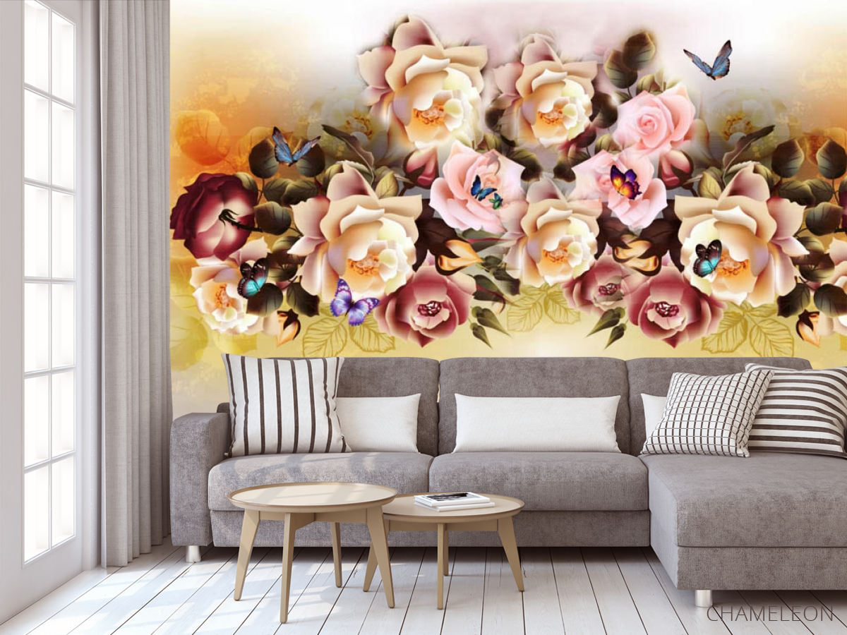 «Фотообои микс цветов с бабочками», (арт. 27432) - купить в интернет-магазине Chameleon
