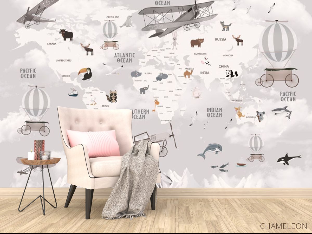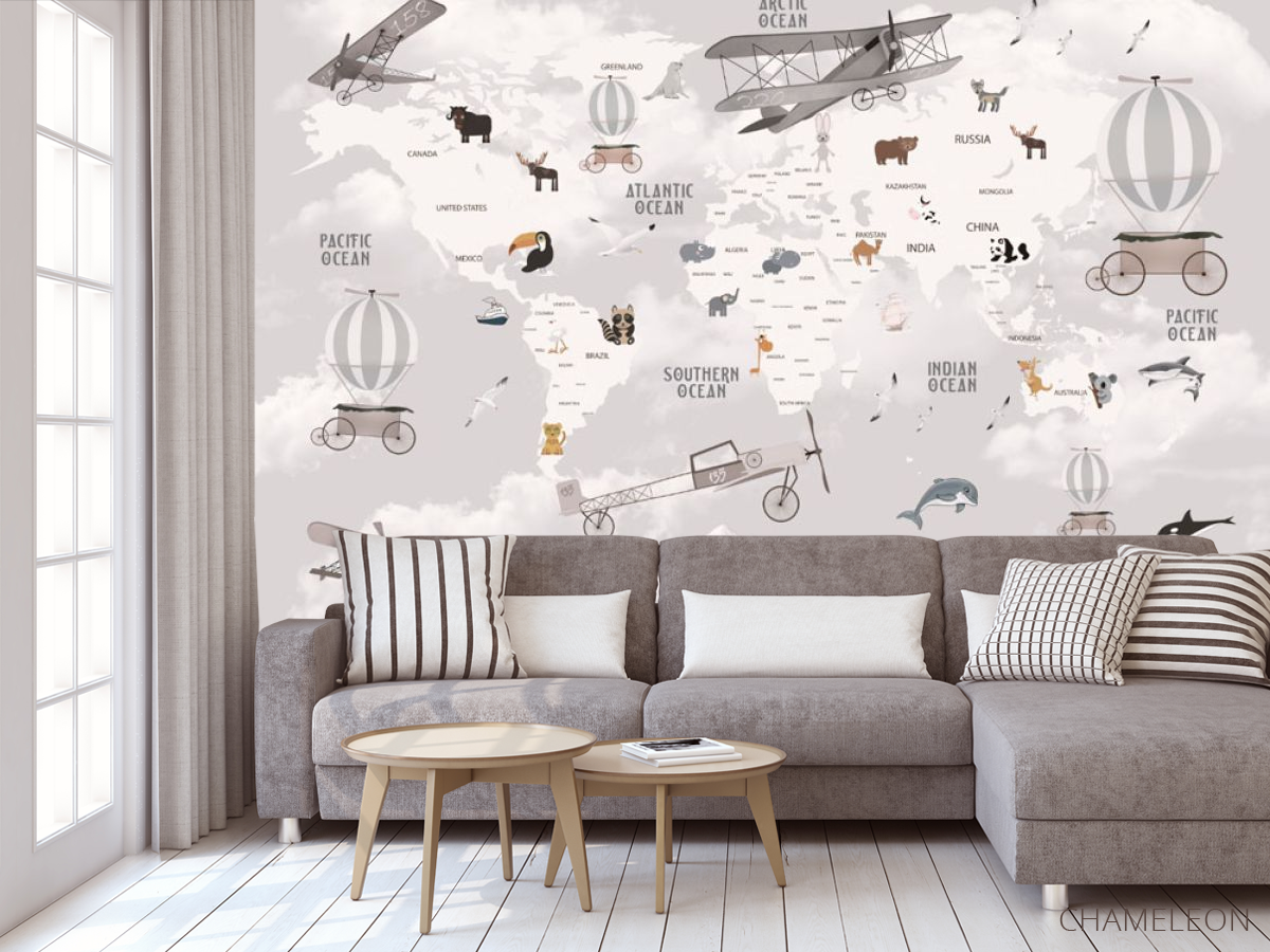 Фотообои Бежевая карта детская минималистичная на английском языке 27737
