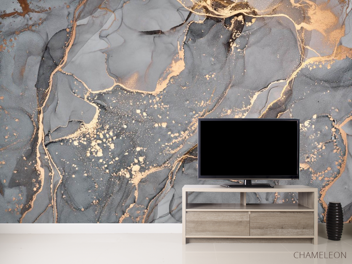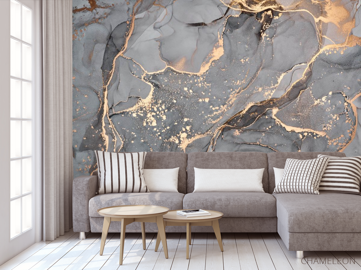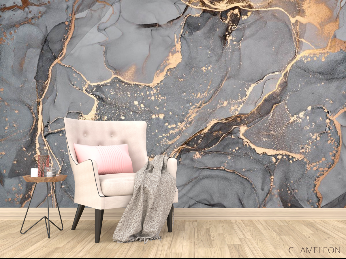 «Фотообои Серый Fluid art с золотом», (арт. 27740) - купить в интернет-магазине Chameleon