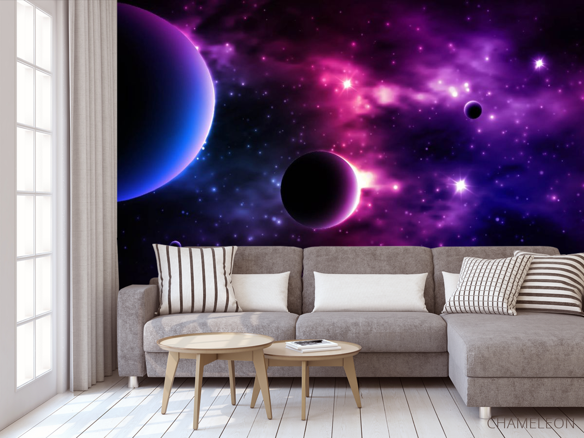 Что же еще настолько идеально будет смотреться как в спальне, так и гостиной или детской комнате? Конечно же - модные фотообои с изображением космоса. Они сочетаются с любым стилем интерьера, но лучше всего подходят под современные оформления и минимализм. Благодаря высокому качеству печати изображения, вы не только можете добиться эффекта погружения в атмосферу, но и сделаете комнату очень стильной. Фотообои космос отличаются универсальностью и практичностью. Они хорошо подходят для маленьких или узких комнат, потому что могут визуально расширить пространство, сделать помещение более свободным. Кроме того, вы можете купить фотообои по низкой цене в нашем интернет-магазине Chameleons.