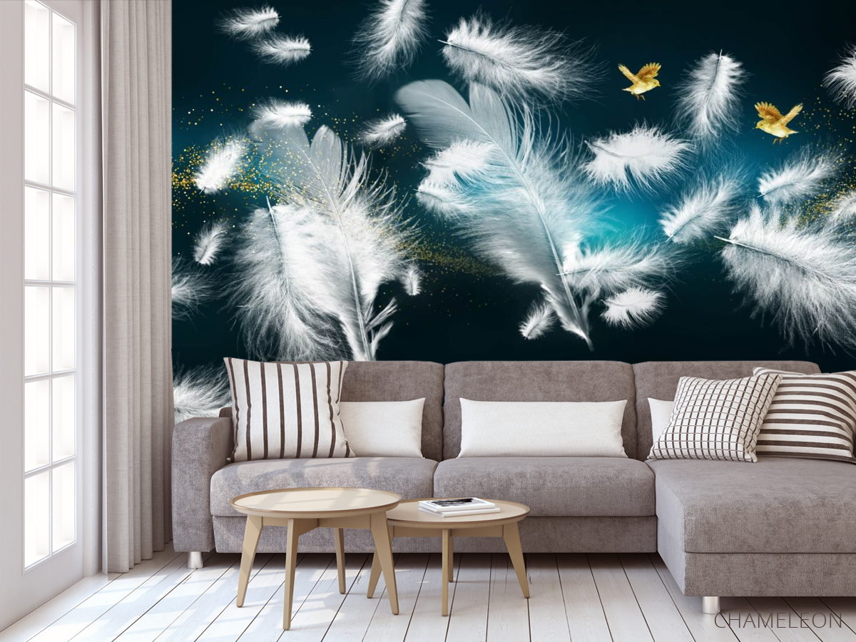 «Фотообои Белые перья и золото», (арт. 27847) - купить в интернет-магазине Chameleon