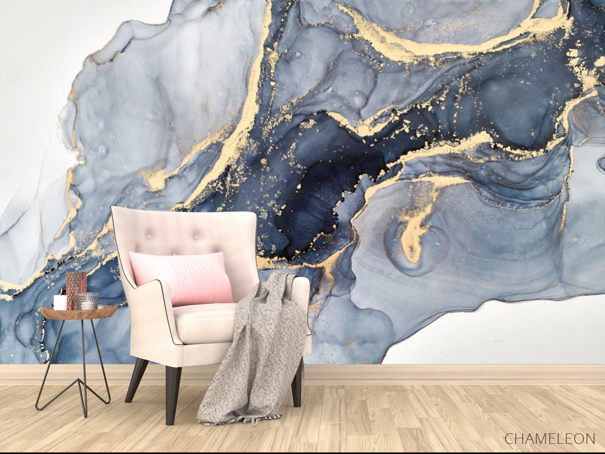 «Фотообои синий флюид с золотом», (арт. 28293g) - купить в интернет-магазине Chameleon