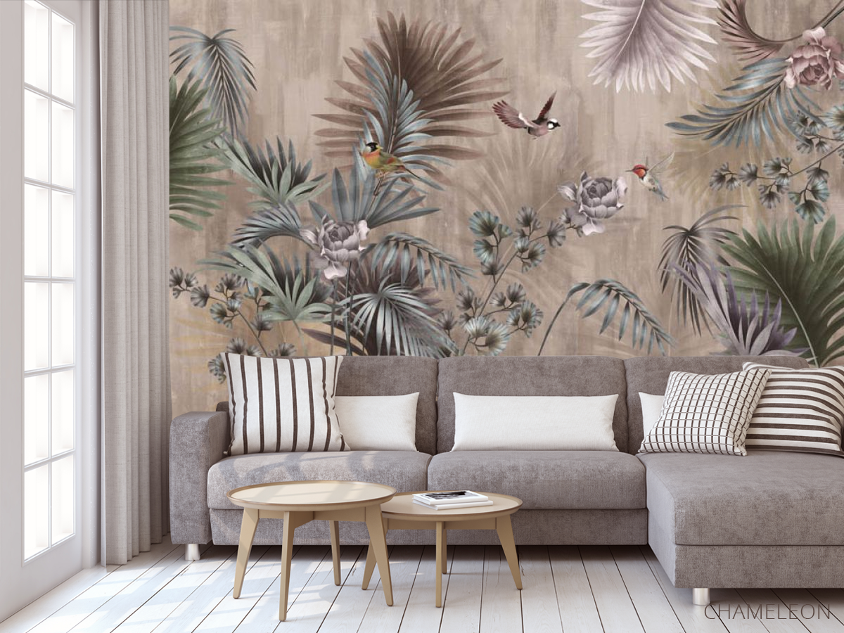 «Фотообои тропические листья и птицы», (арт. 28351) - купить в интернет-магазине Chameleon