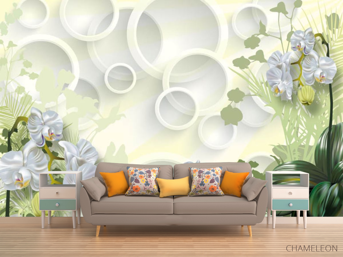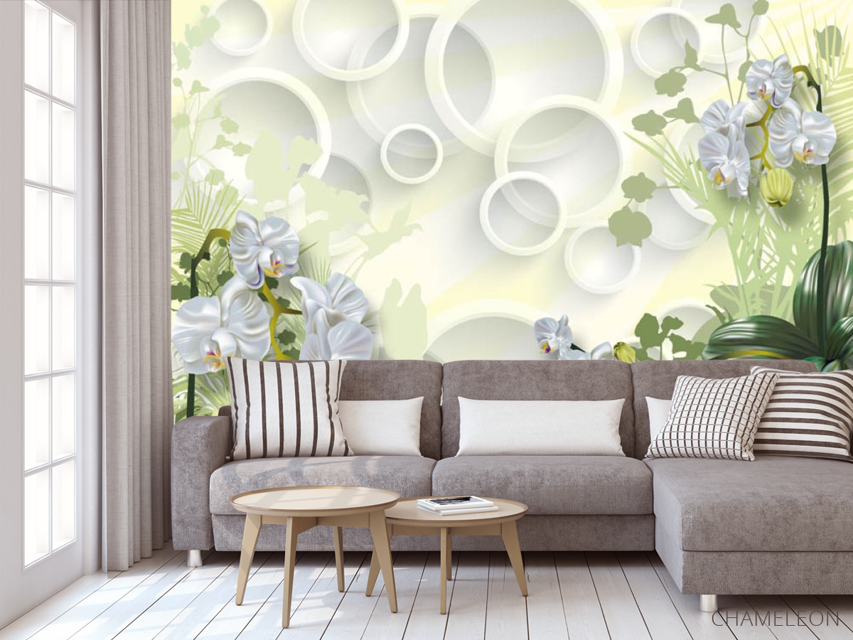 «Фотообои цветы и круги 3д», (арт. 28569) - купить в интернет-магазине Chameleon