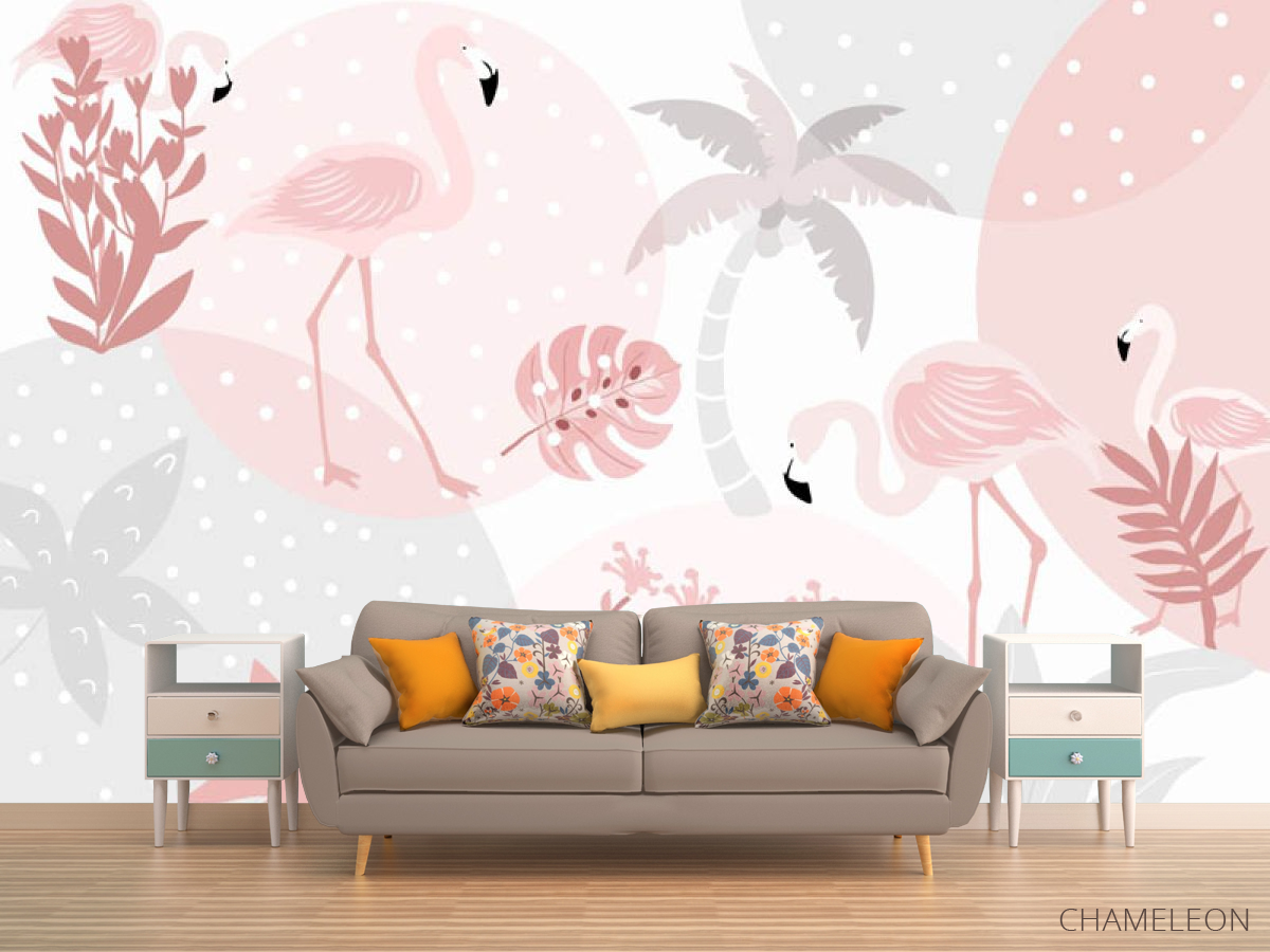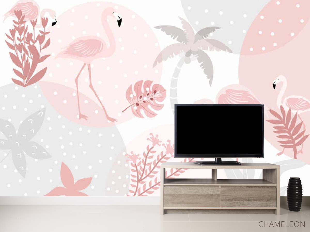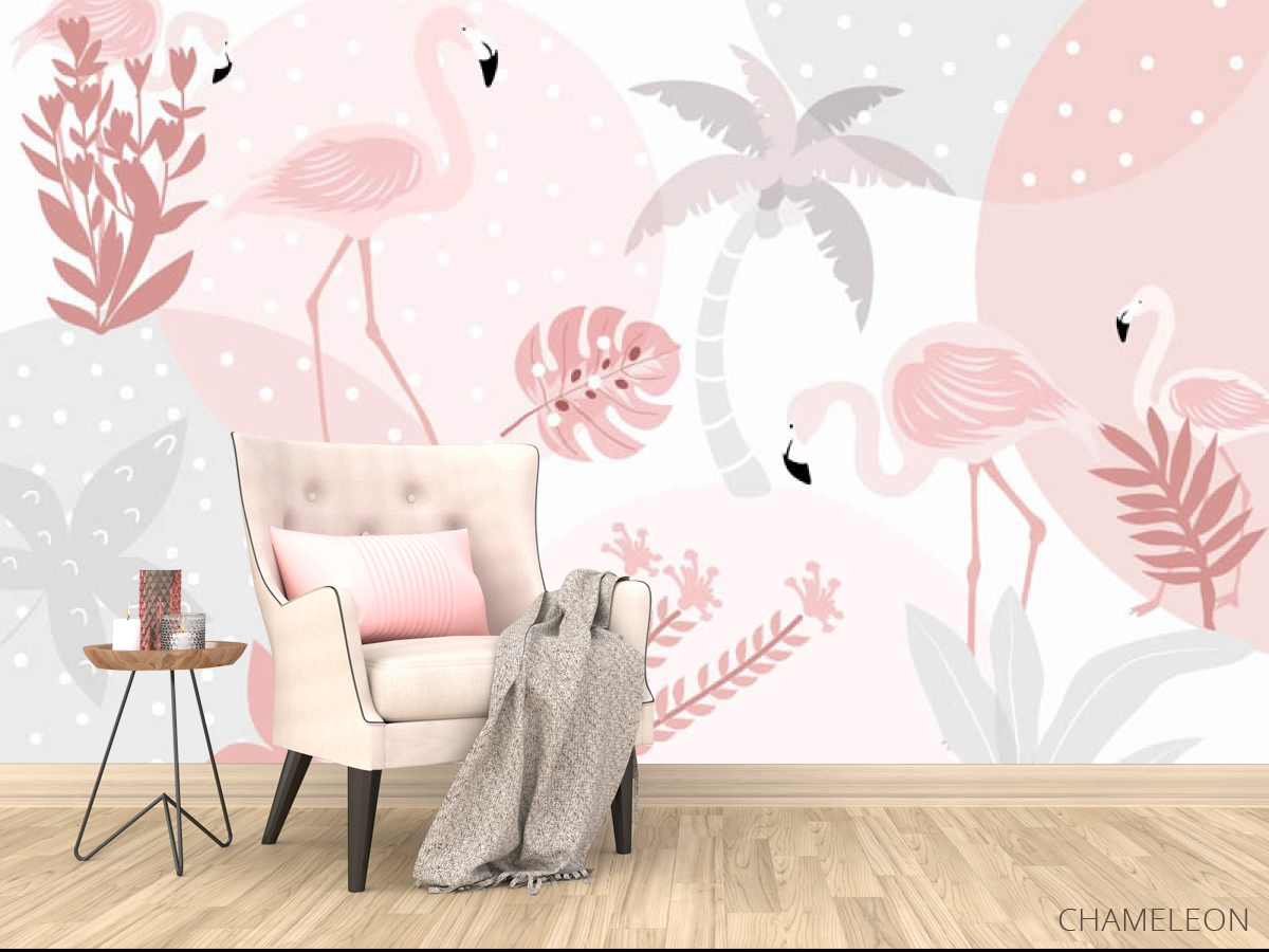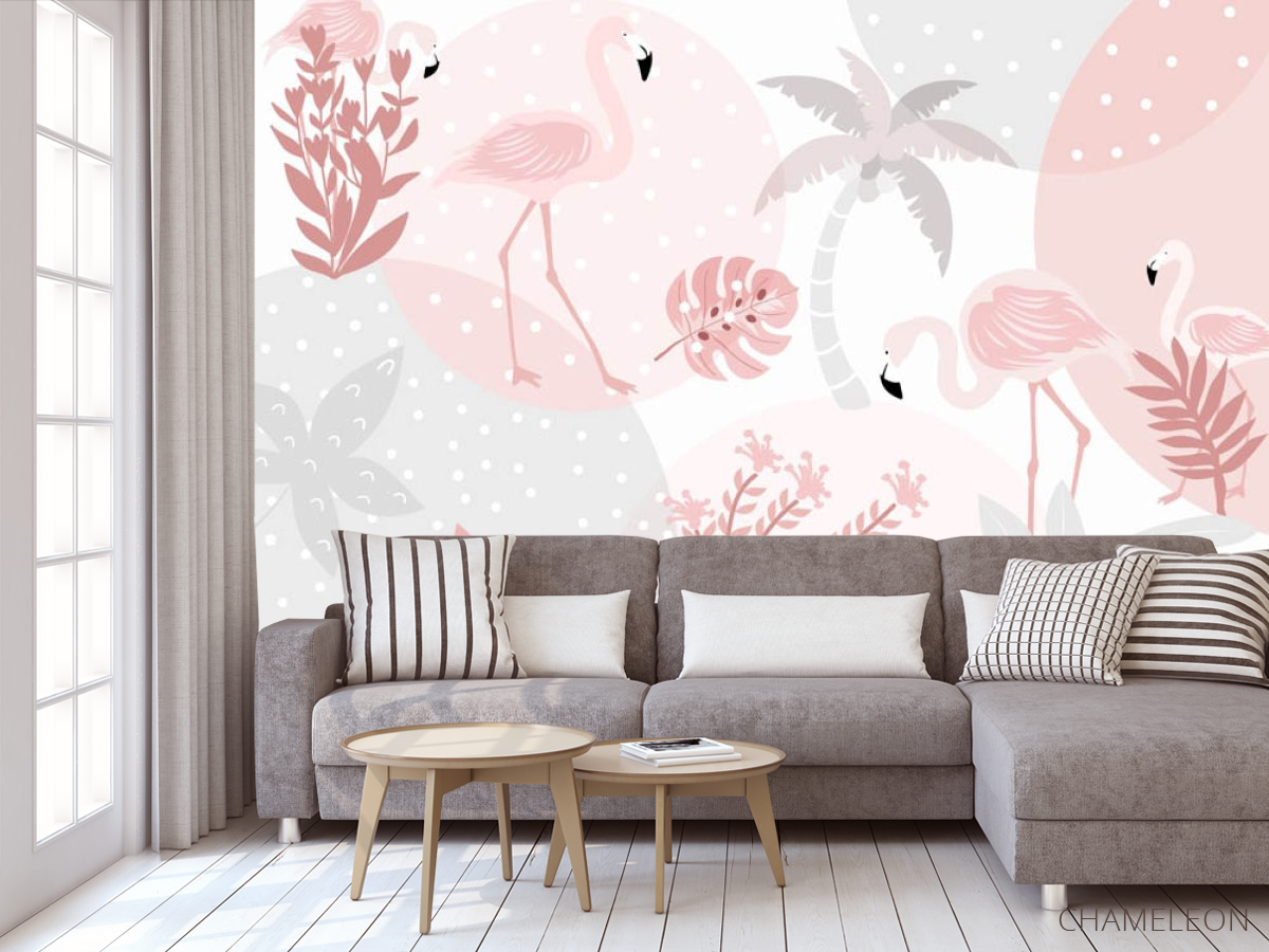 «Фотообои фламинго и пальмы», (арт. 28609) - купить в интернет-магазине Chameleon