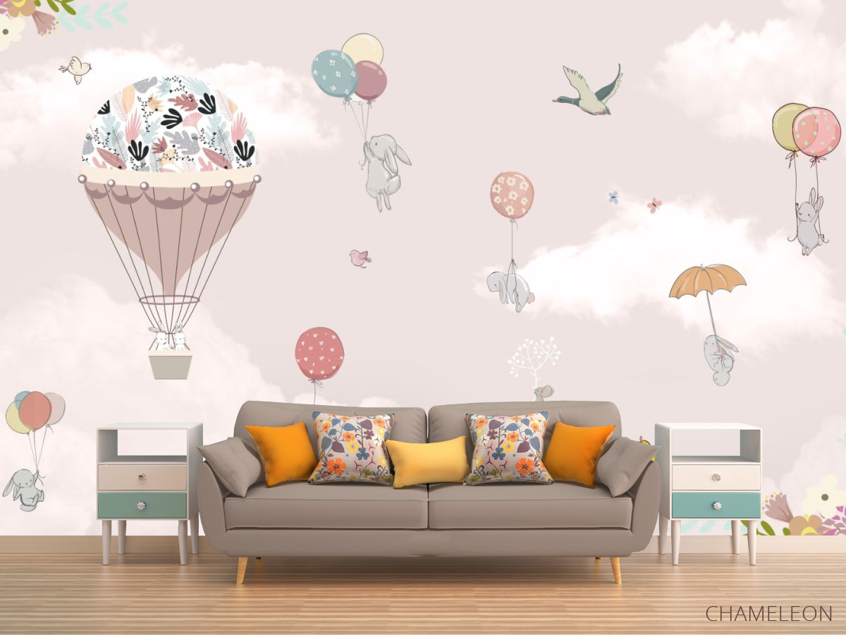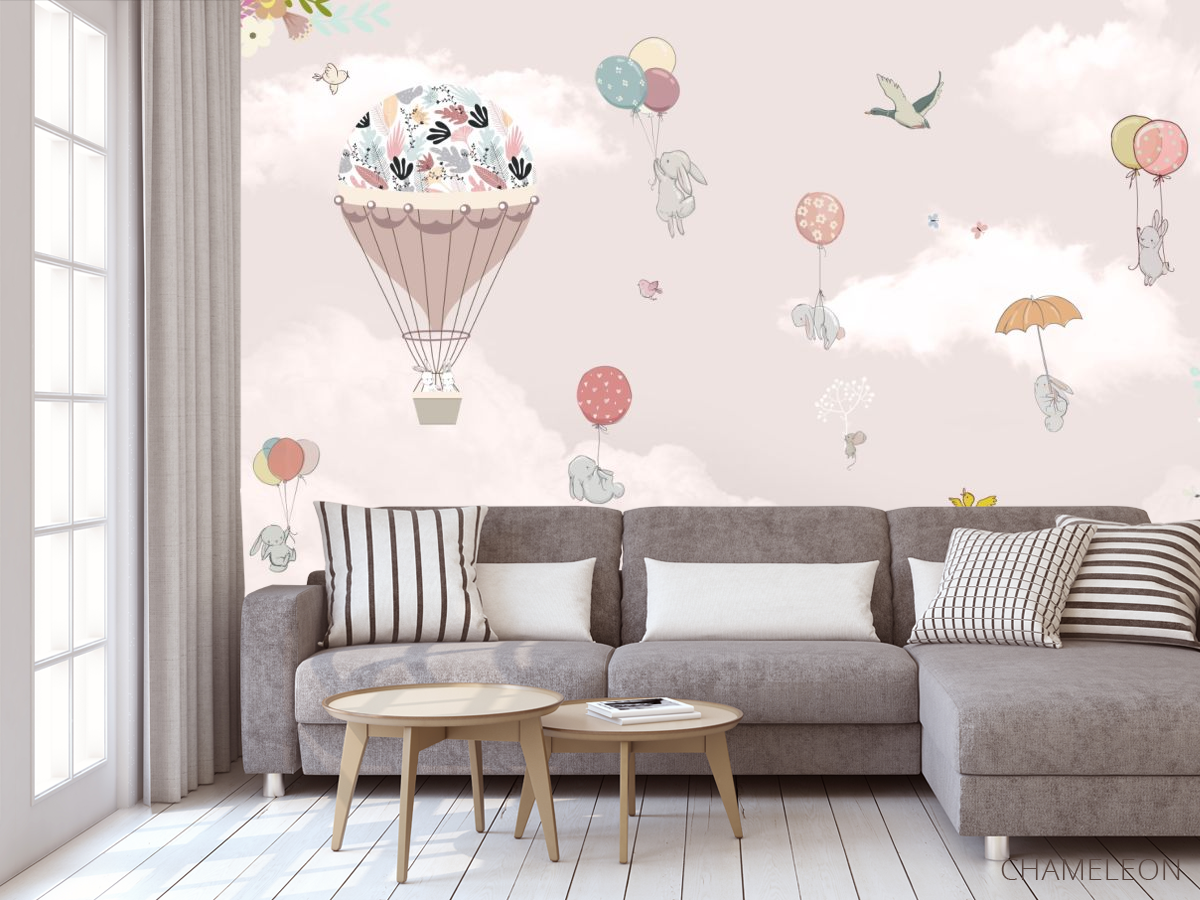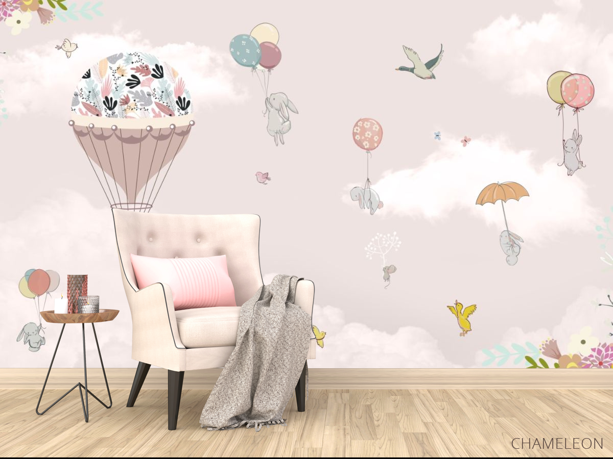 Фотообои зайки на воздушных шарах 28624