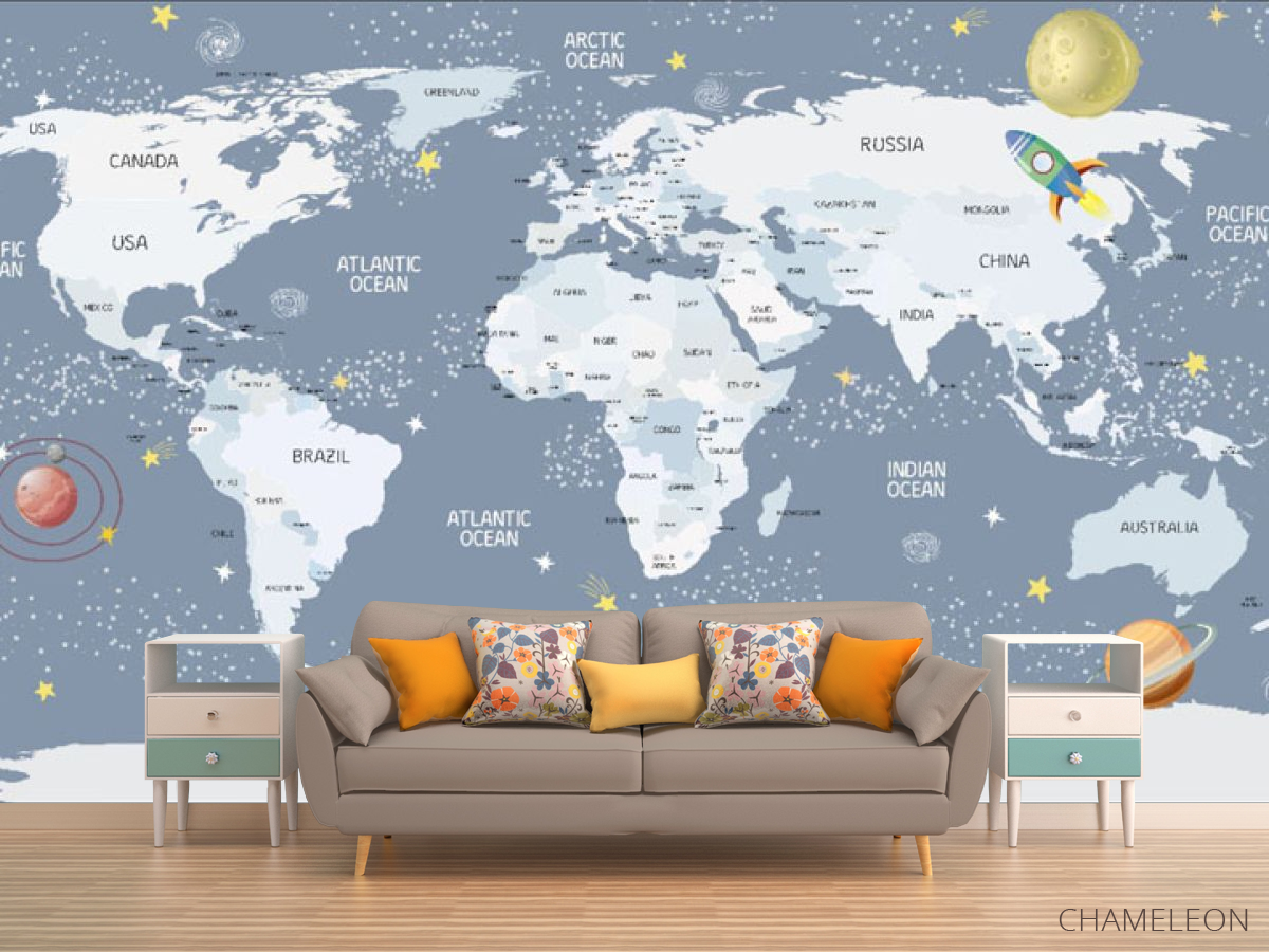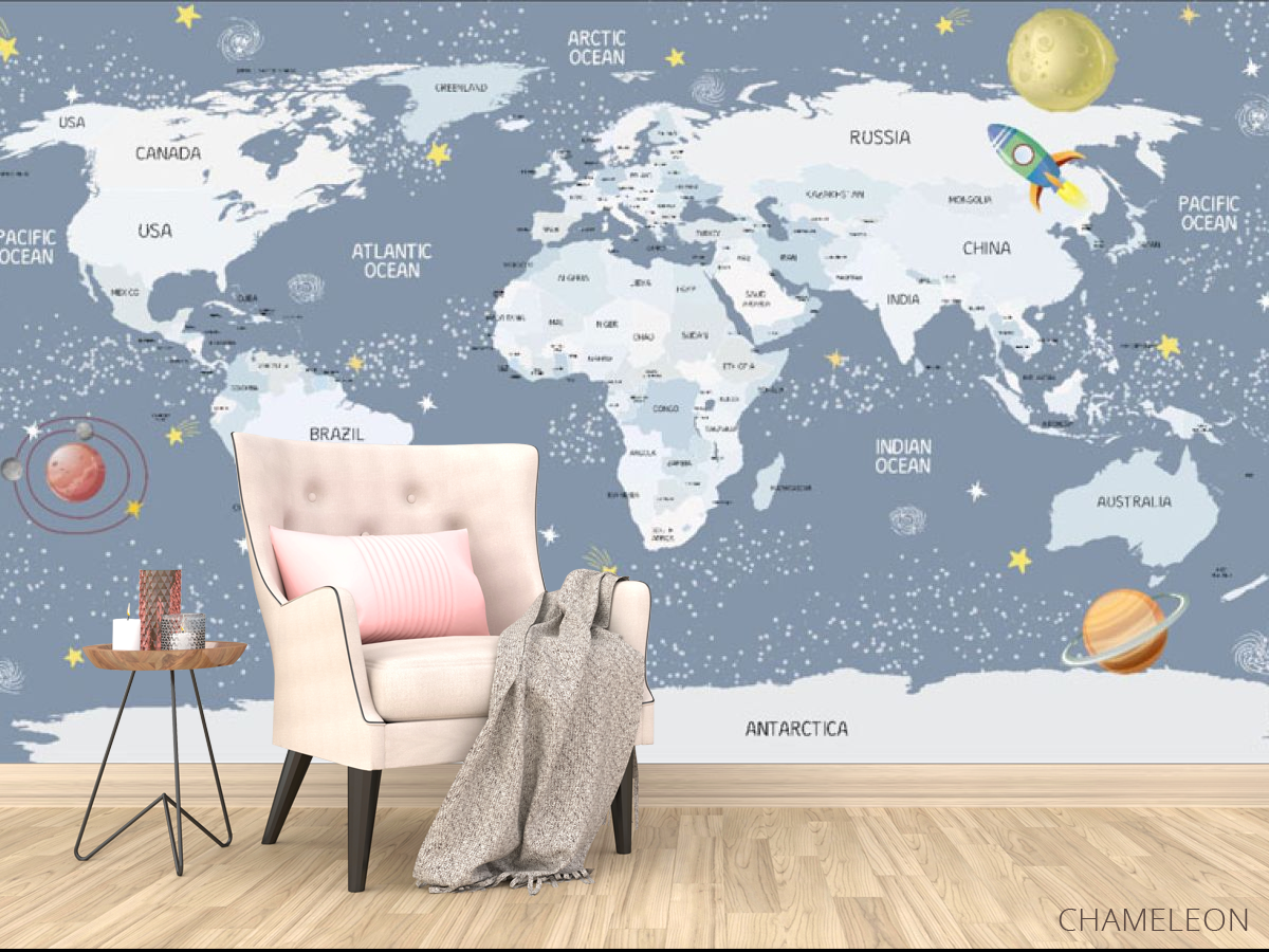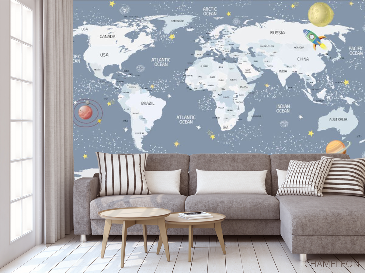 Фотообои Голубая карта детская на английском языке 28626_1