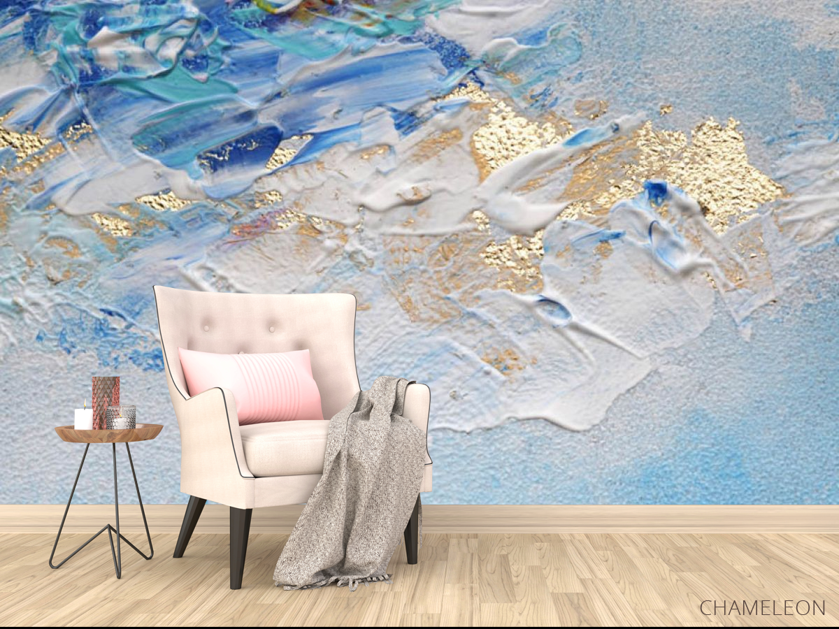 «Фотообои Голубые мазки с золотом», (арт. 28734) - купить в интернет-магазине Chameleon