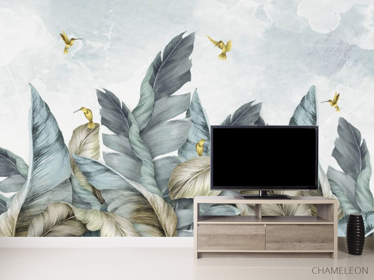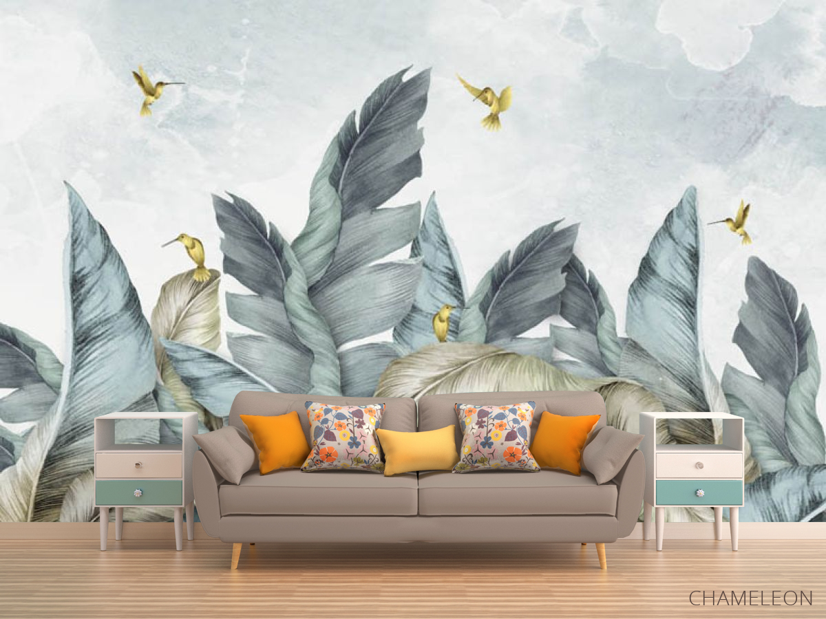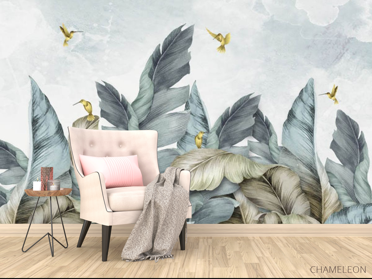 Фотообои Птицы и тропические листья