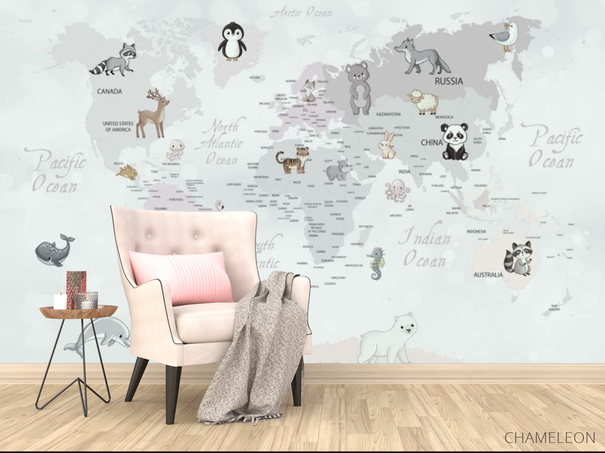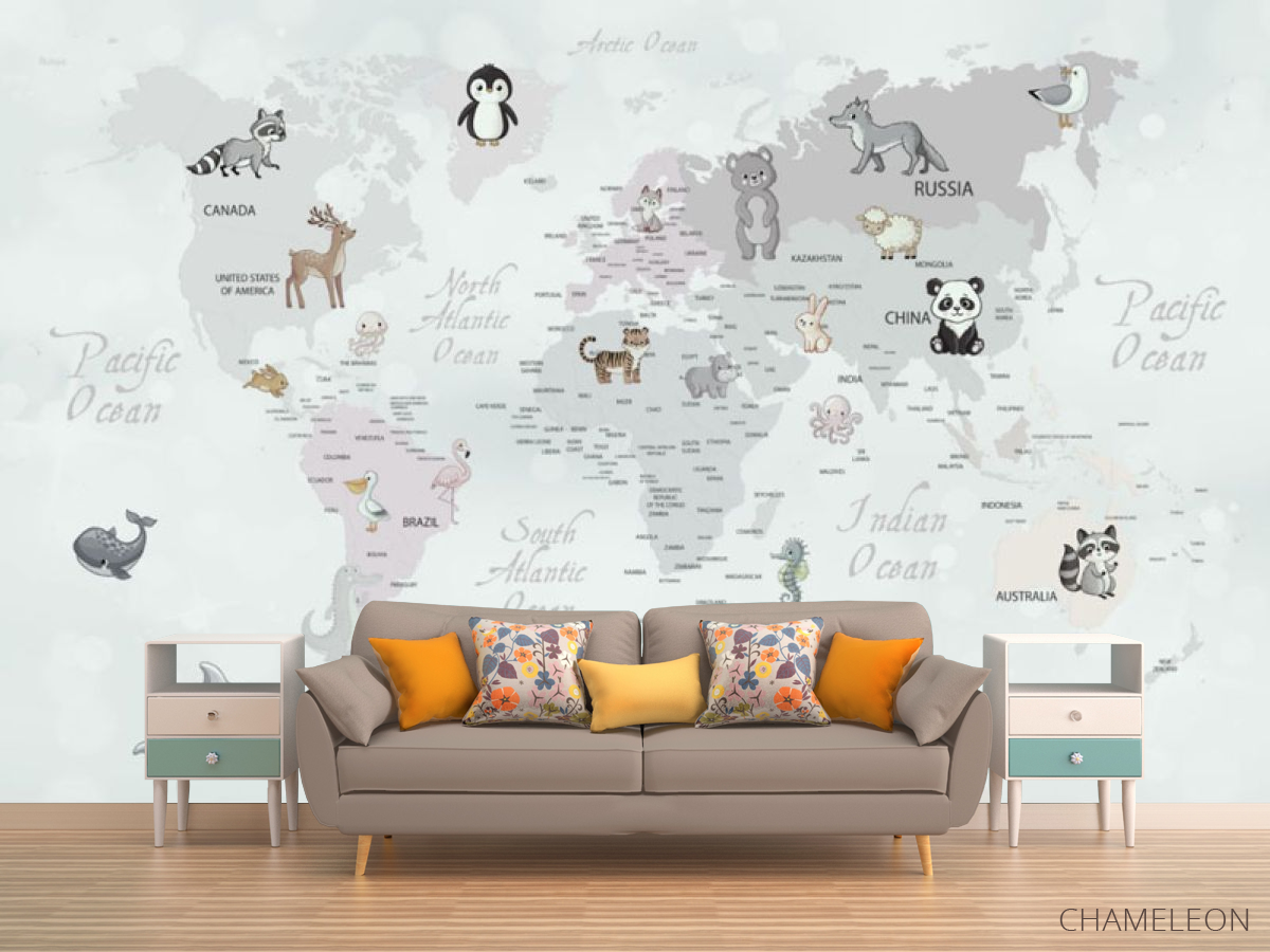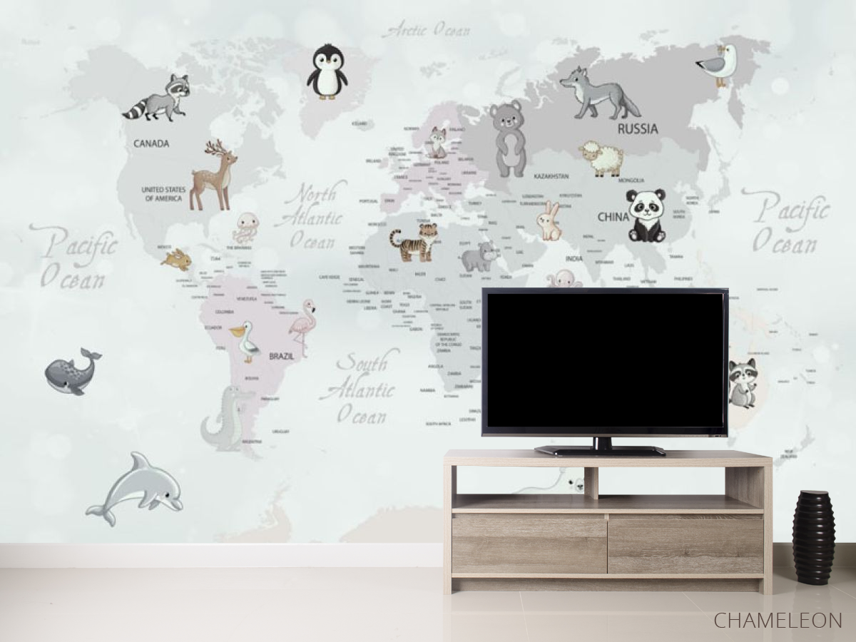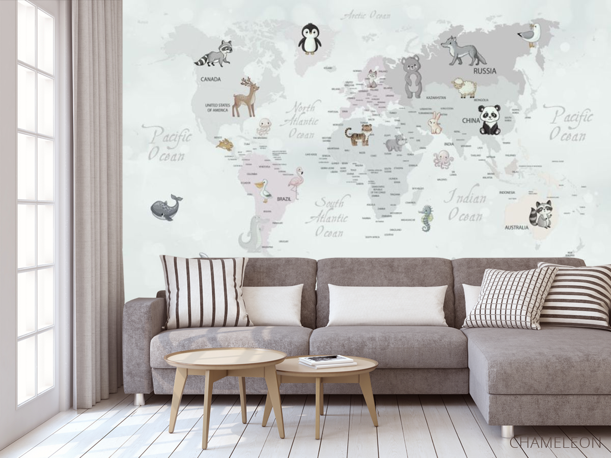 Фотообои Серая карта с животными 28892