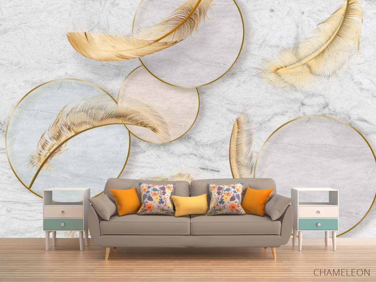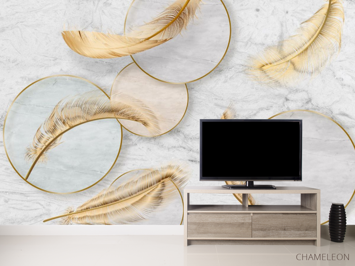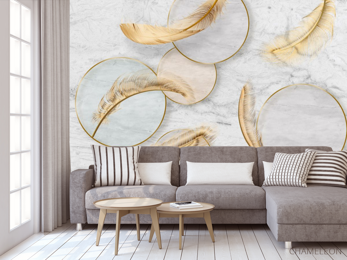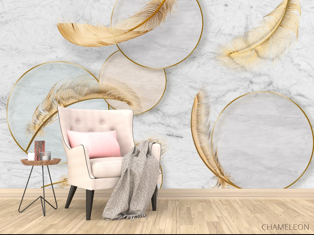 «Фотообои золотые перья», (арт. 29001g) - купить в интернет-магазине Chameleon