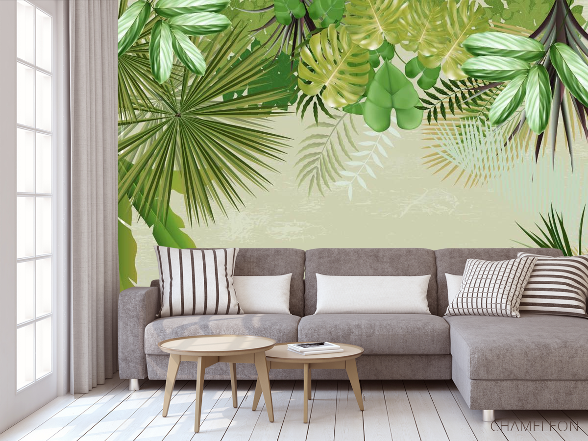 Современный интерьер в большинстве случаев исполнен из пастельных оттенков и порой хочется внести в них немного яркости. Фотообои тропические листья станут отличным решениям для тех, кто желает разбавить стиль комнаты и придать ему природной бодрости, красочности и создать атмосферу жарких стран. Такие обои чудесно впишутся в обстановку спальни, кухни или гостиной. Фотообои Тропические листья добавят в дом комфорта и уюта, а также будут радовать глаз на протяжении многих лет. Обои изготовлены из материалов высокого качества, не вызывают аллергию и не выгорают на солнце. Вы можете выбрать бумажную или флизилиновую основу, но вне зависимости от этого, клеить их абсолютно легко: достаточно лишь нанести клей на стену и прикрепить полотно.