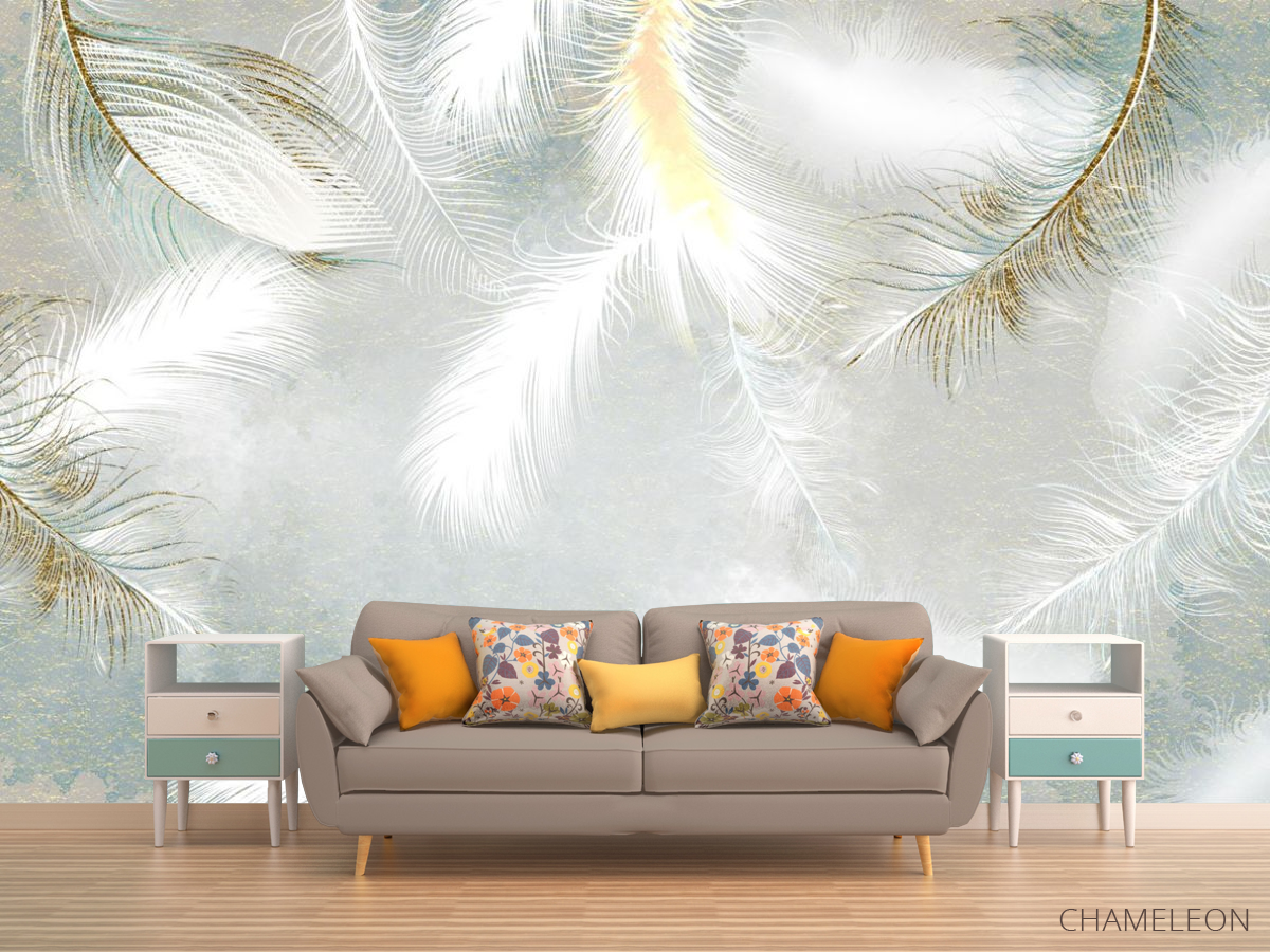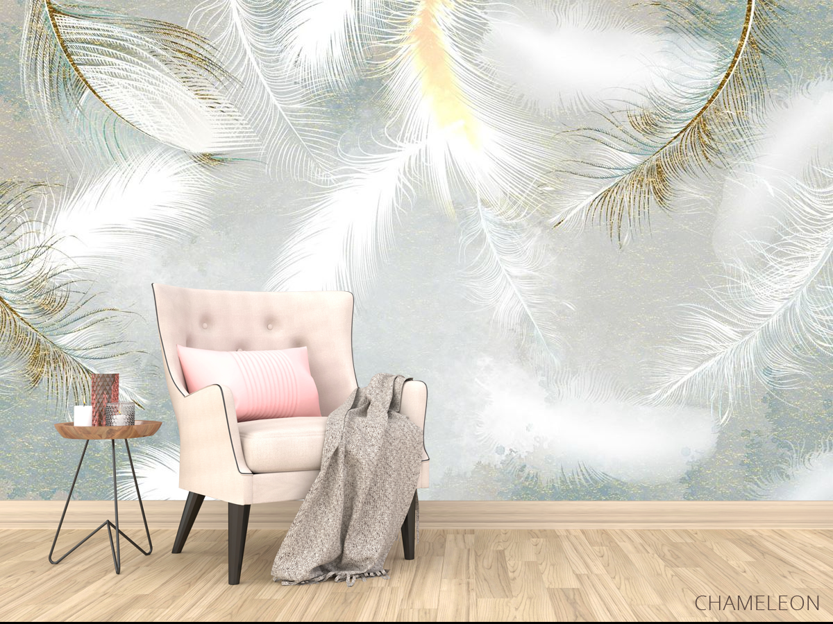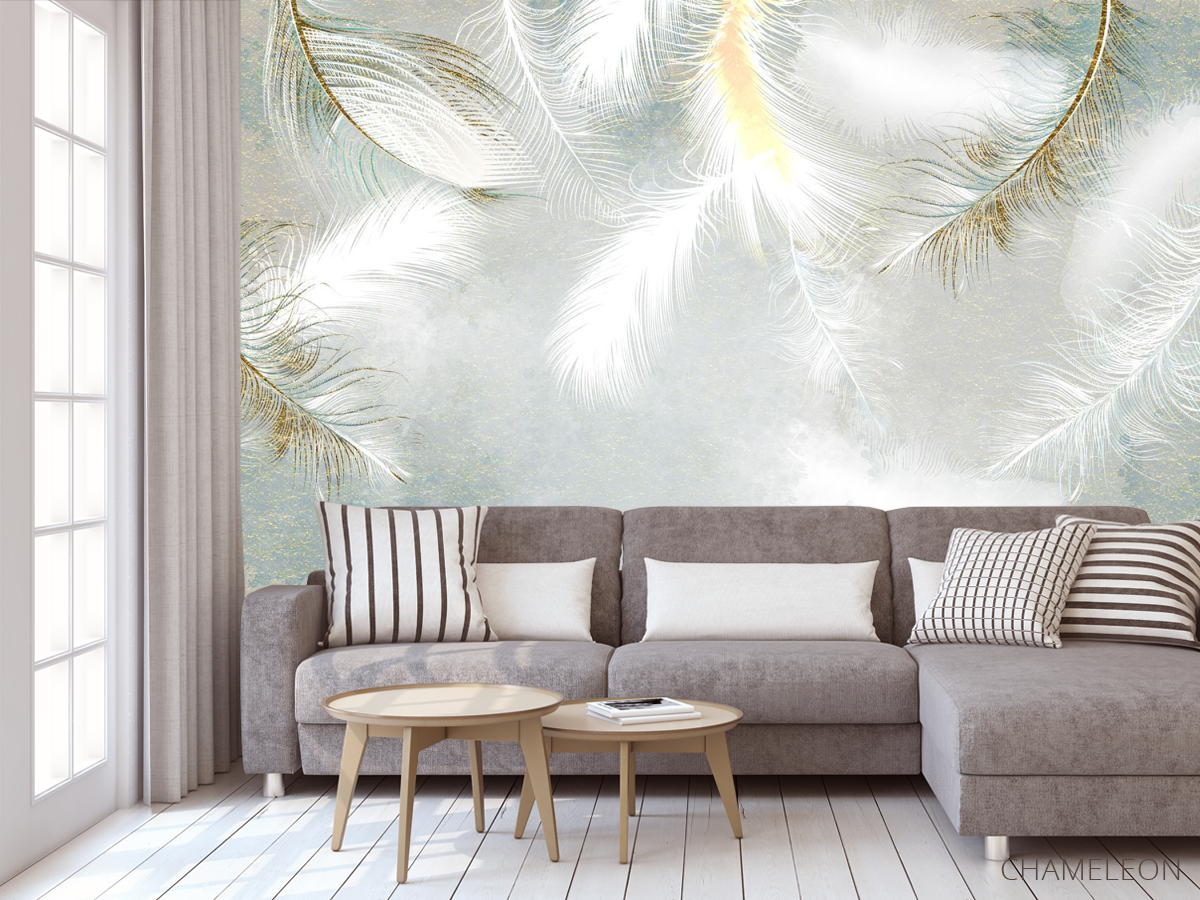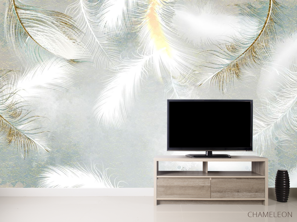 «Фотообои перья с золотом», (арт. 29229g) - купить в интернет-магазине Chameleon