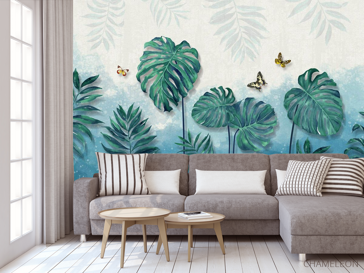 Современный интерьер в большинстве случаев исполнен из пастельных оттенков и порой хочется внести в них немного яркости. Фотообои тропические листья станут отличным решениям для тех, кто желает разбавить стиль комнаты и придать ему природной бодрости, красочности и создать атмосферу жарких стран. Такие обои чудесно впишутся в обстановку спальни, кухни или гостиной. Фотообои Тропические листья добавят в дом комфорта и уюта, а также будут радовать глаз на протяжении многих лет. Обои изготовлены из материалов высокого качества, не вызывают аллергию и не выгорают на солнце. Вы можете выбрать бумажную или флизилиновую основу, но вне зависимости от этого, клеить их абсолютно легко: достаточно лишь нанести клей на стену и прикрепить полотно.