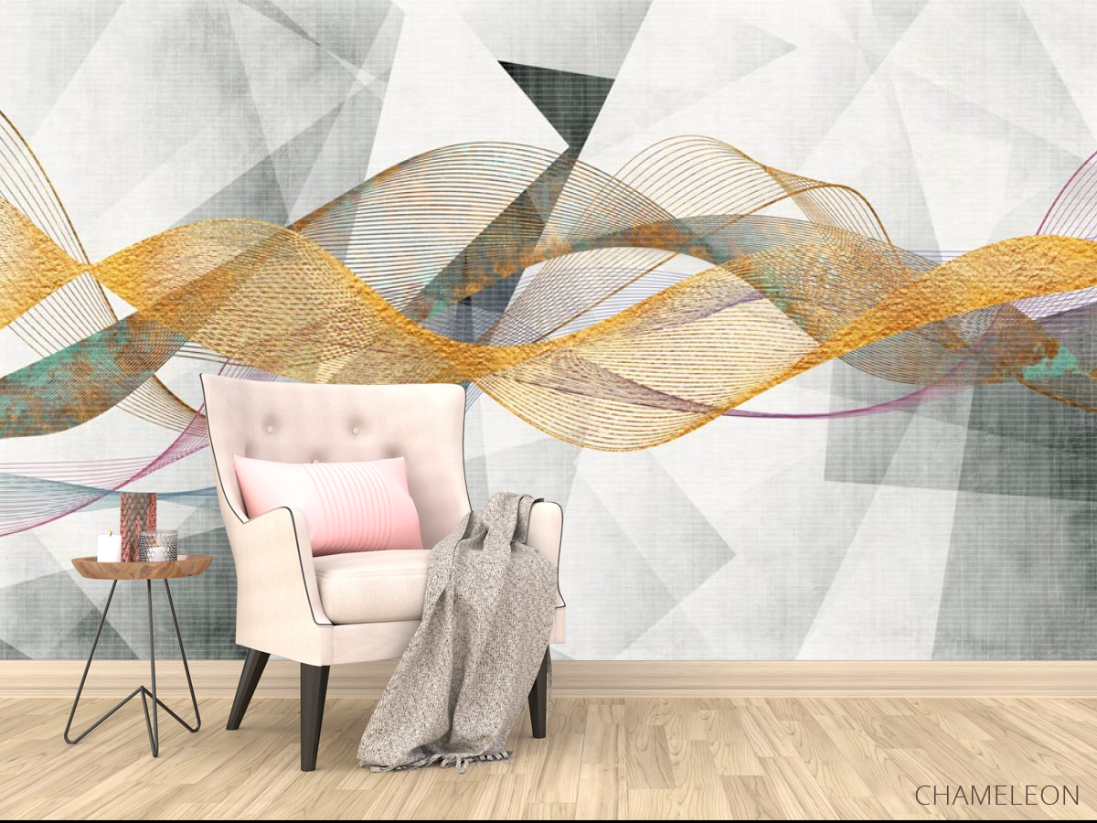 «Фотообои Золотые линии на геометрии», (арт. 29268) - купить в интернет-магазине Chameleon