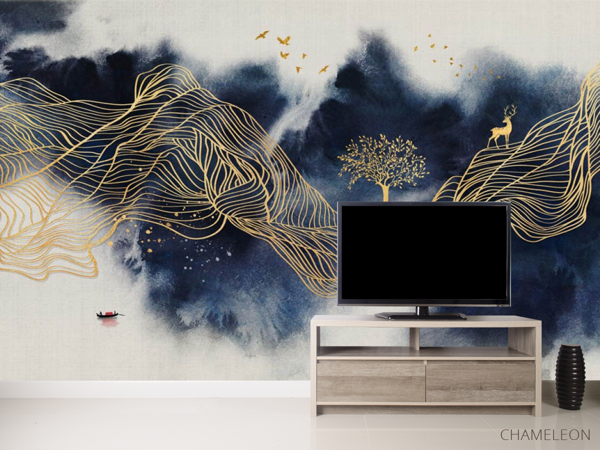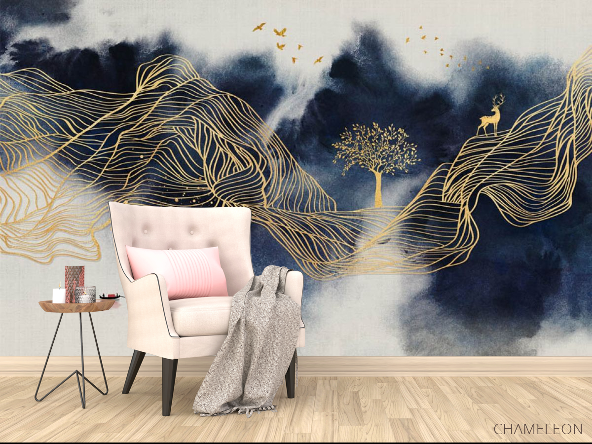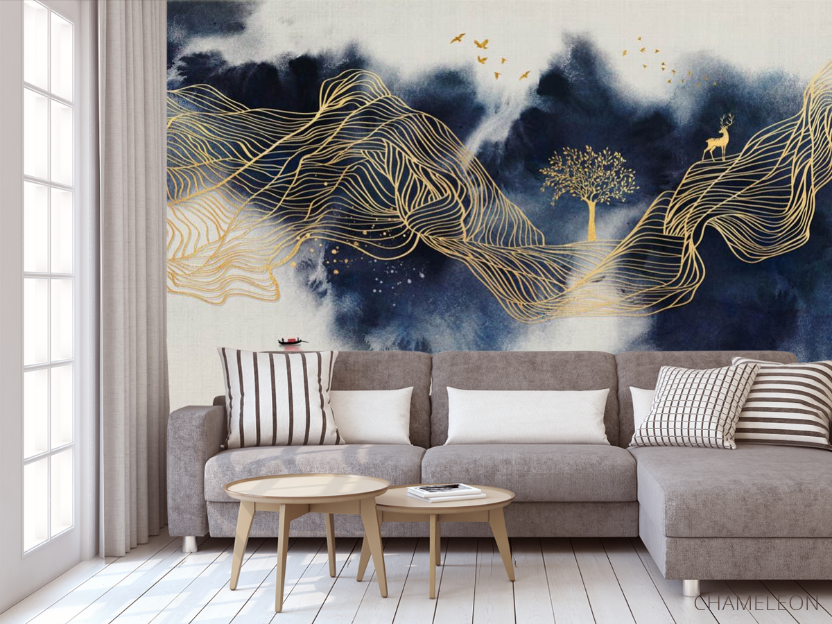 Фотообои Синие горы с золотом 29301
