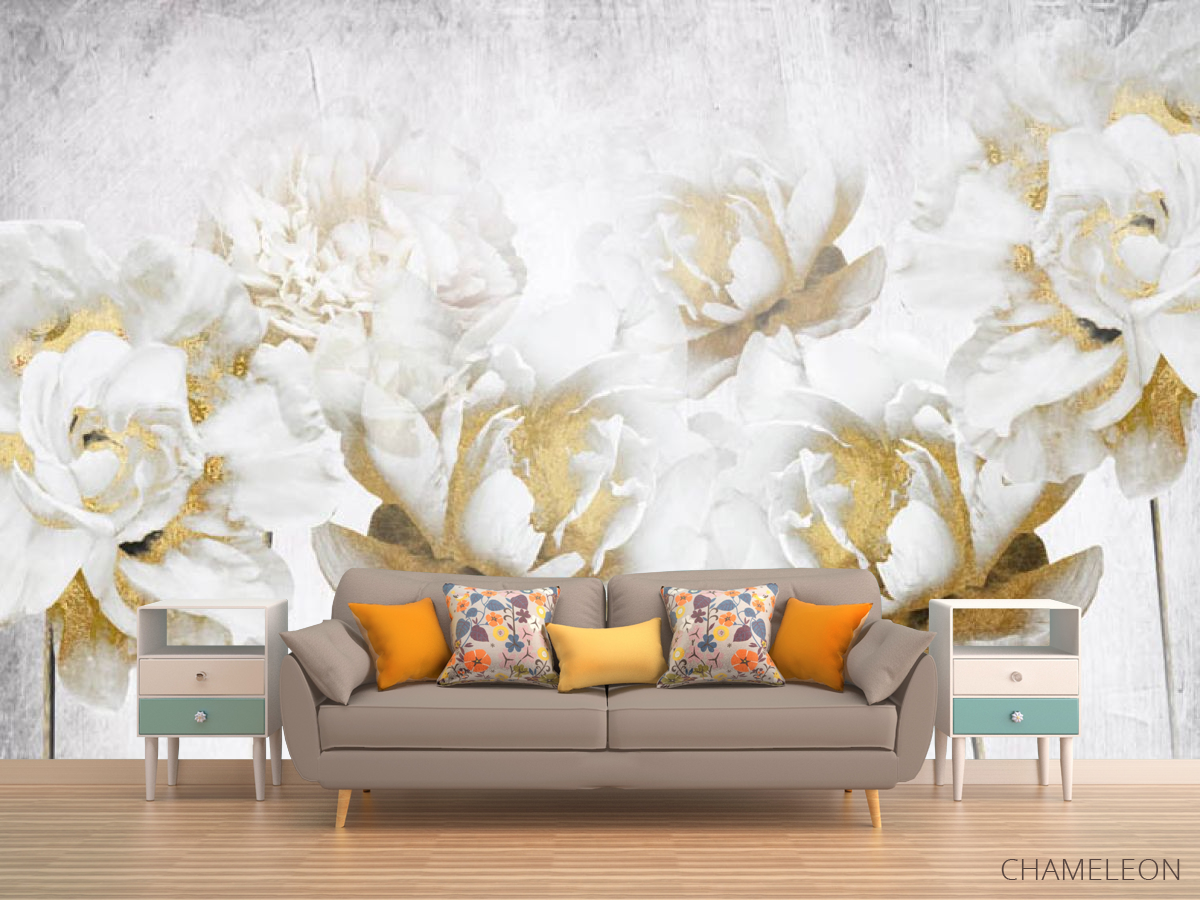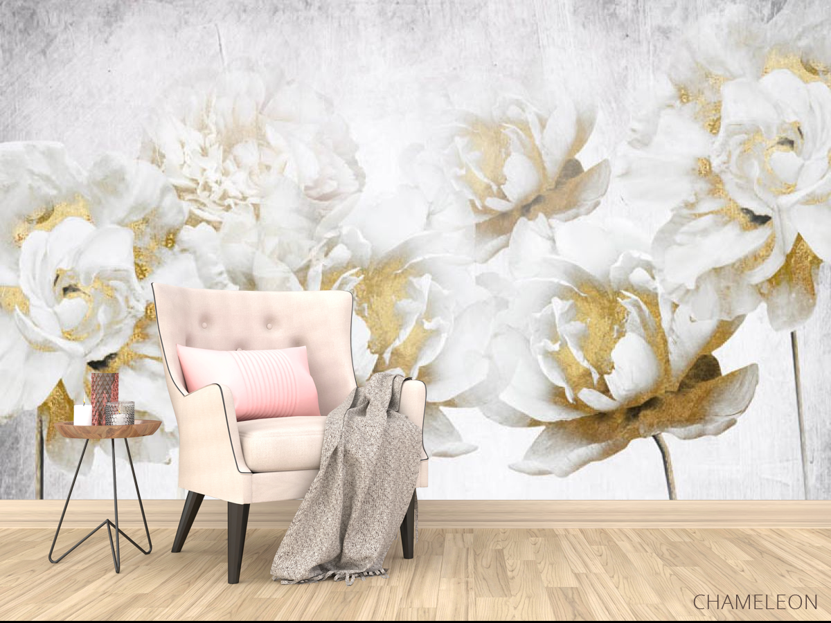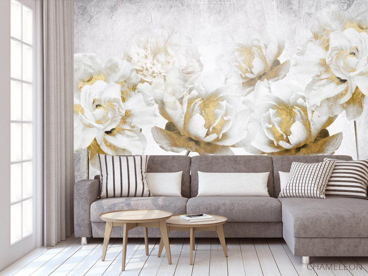 «Фотообои Белые цветы с золотом», (арт. 29580) - купить в интернет-магазине Chameleon