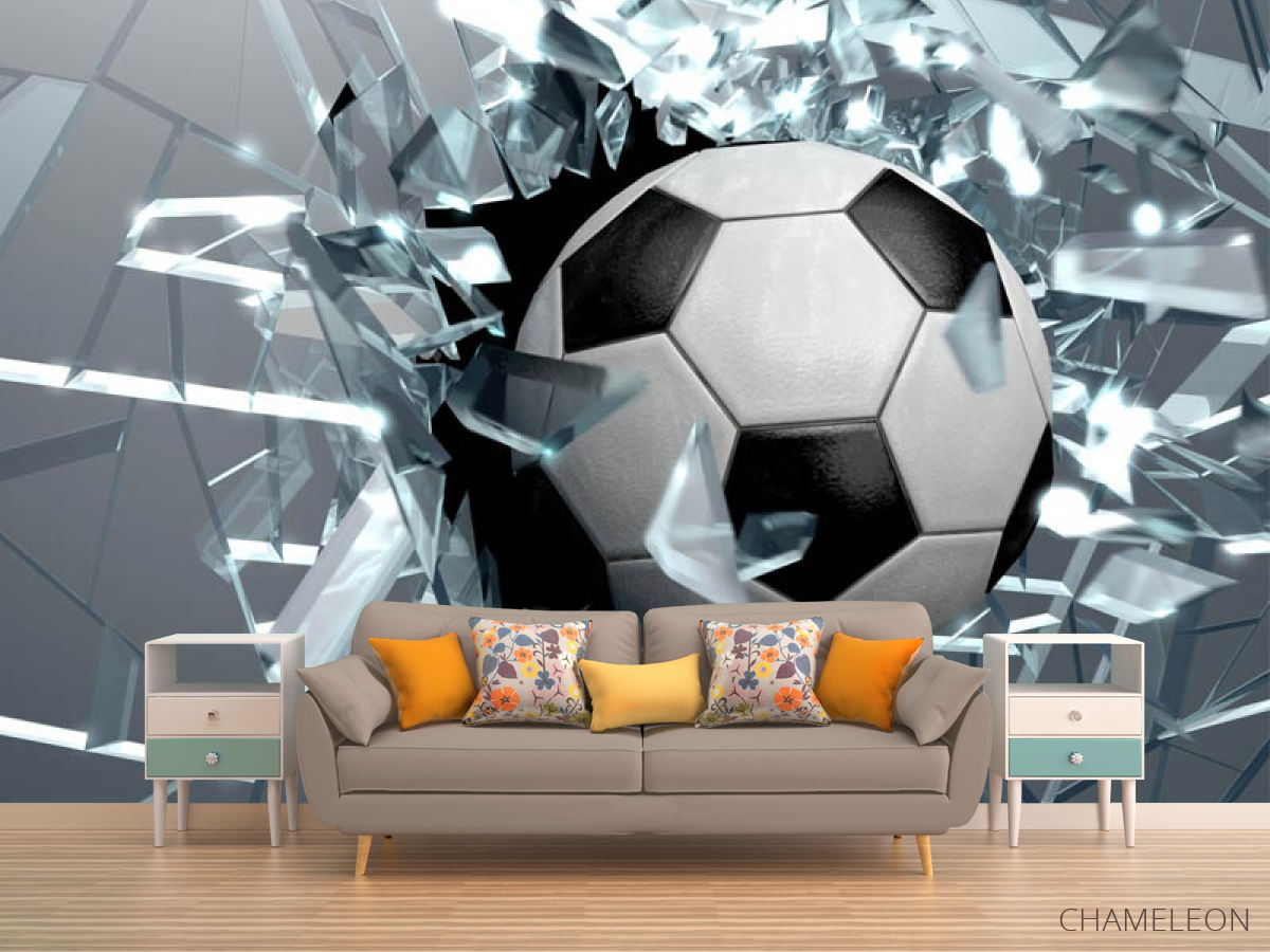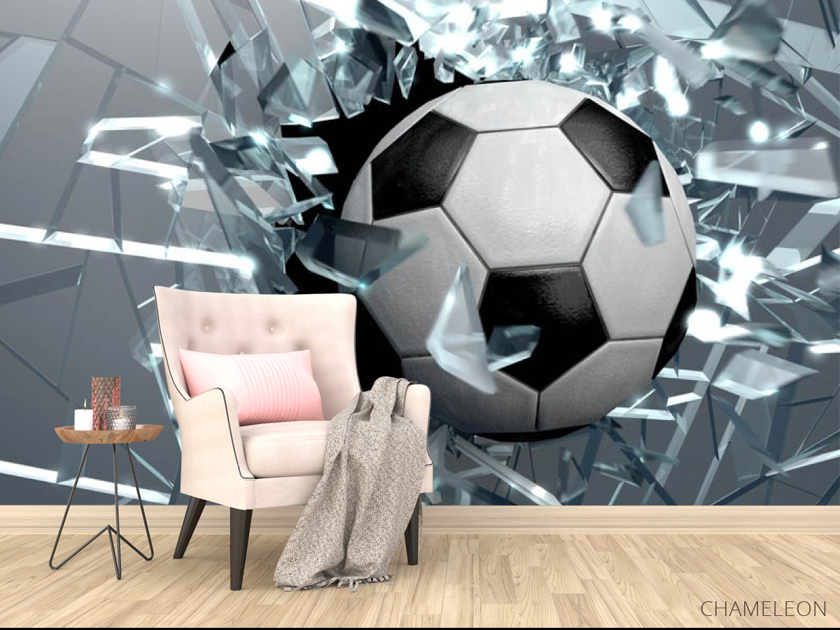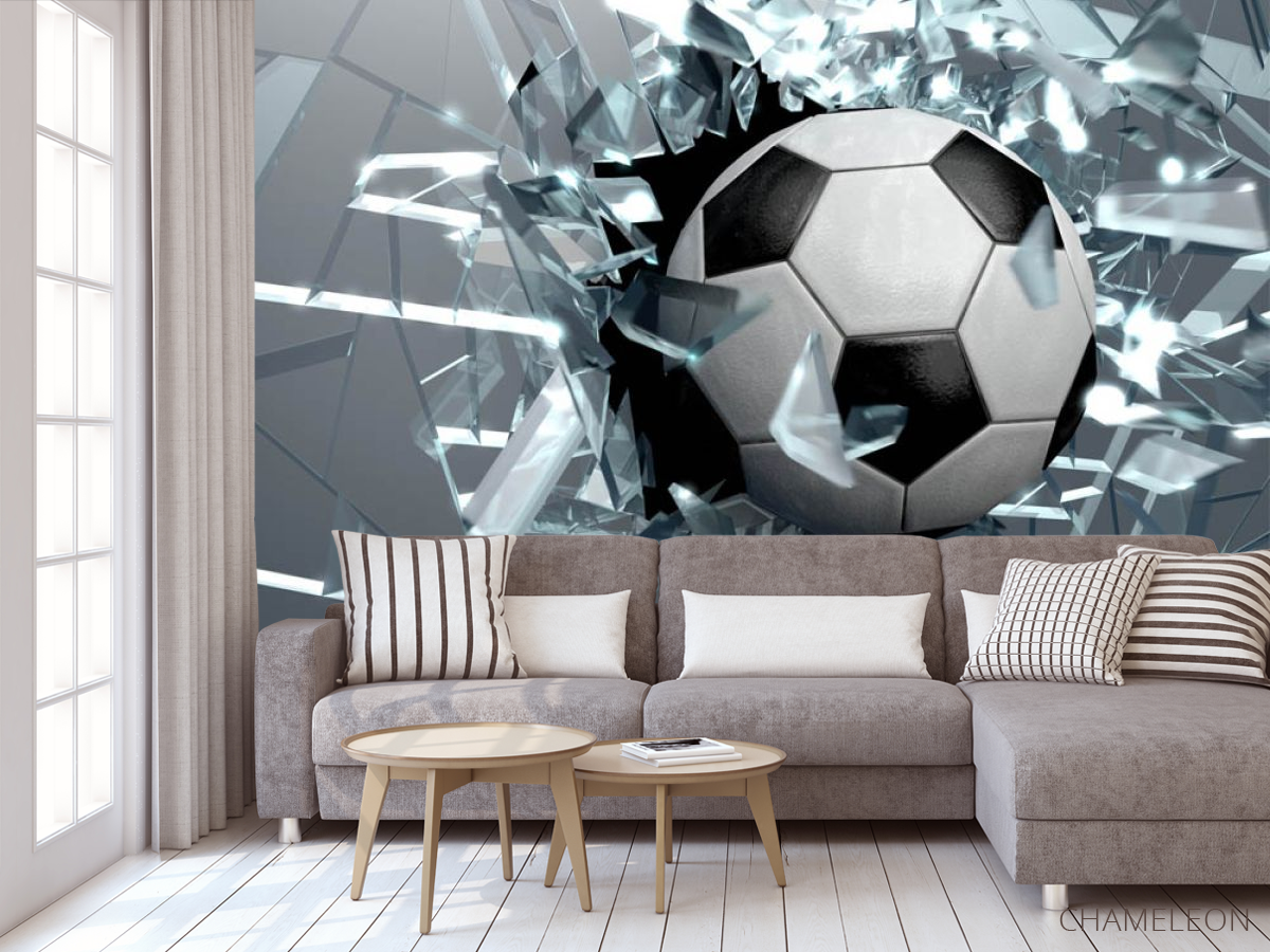 «Фотообои Футбольный мяч и битое стекло», (арт. 29741) - купить в интернет-магазине Chameleon