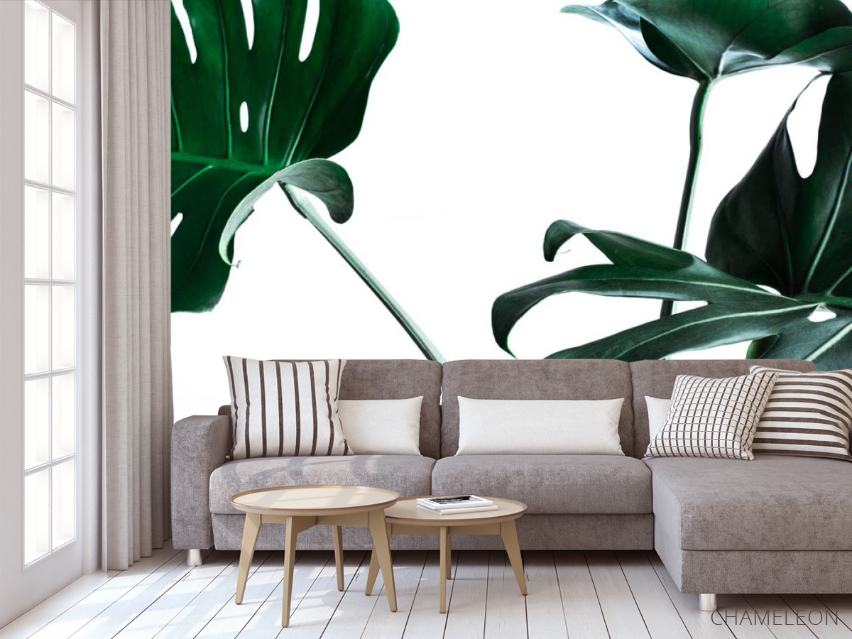 Современный интерьер в большинстве случаев исполнен из пастельных оттенков и порой хочется внести в них немного яркости. Фотообои тропические листья станут отличным решениям для тех, кто желает разбавить стиль комнаты и придать ему природной бодрости, красочности и создать атмосферу жарких стран. Такие обои чудесно впишутся в обстановку спальни, кухни или гостиной. Фотообои Тропические листья добавят в дом комфорта и уюта, а также будут радовать глаз на протяжении многих лет. Обои изготовлены из материалов высокого качества, не вызывают аллергию и не выгорают на солнце. Вы можете выбрать бумажную или флизилиновую основу, но вне зависимости от этого, клеить их абсолютно легко: достаточно лишь нанести клей на стену и прикрепить полотно.