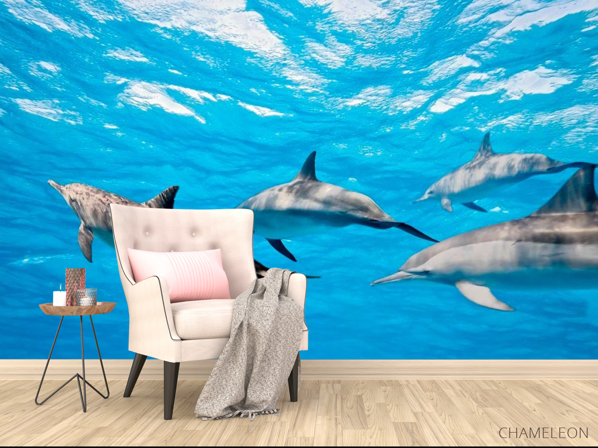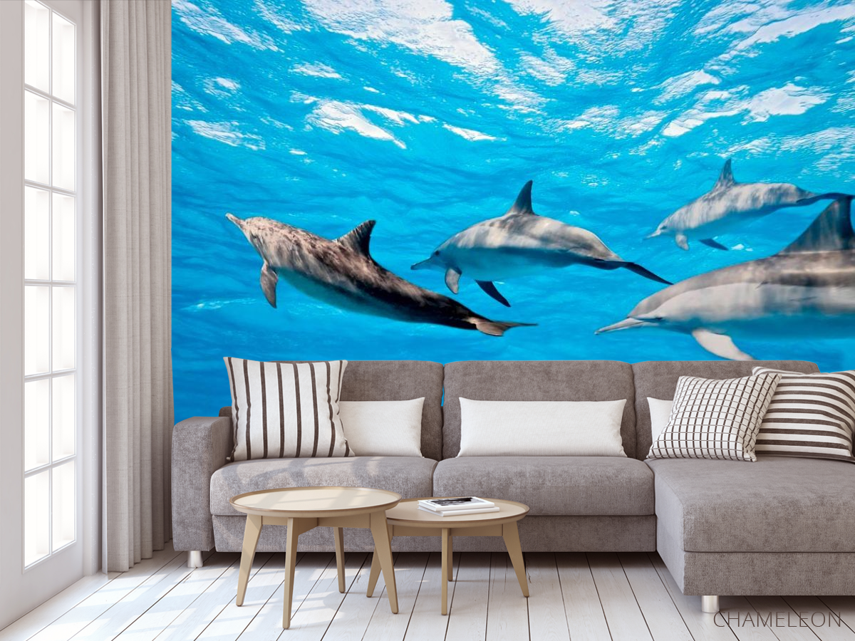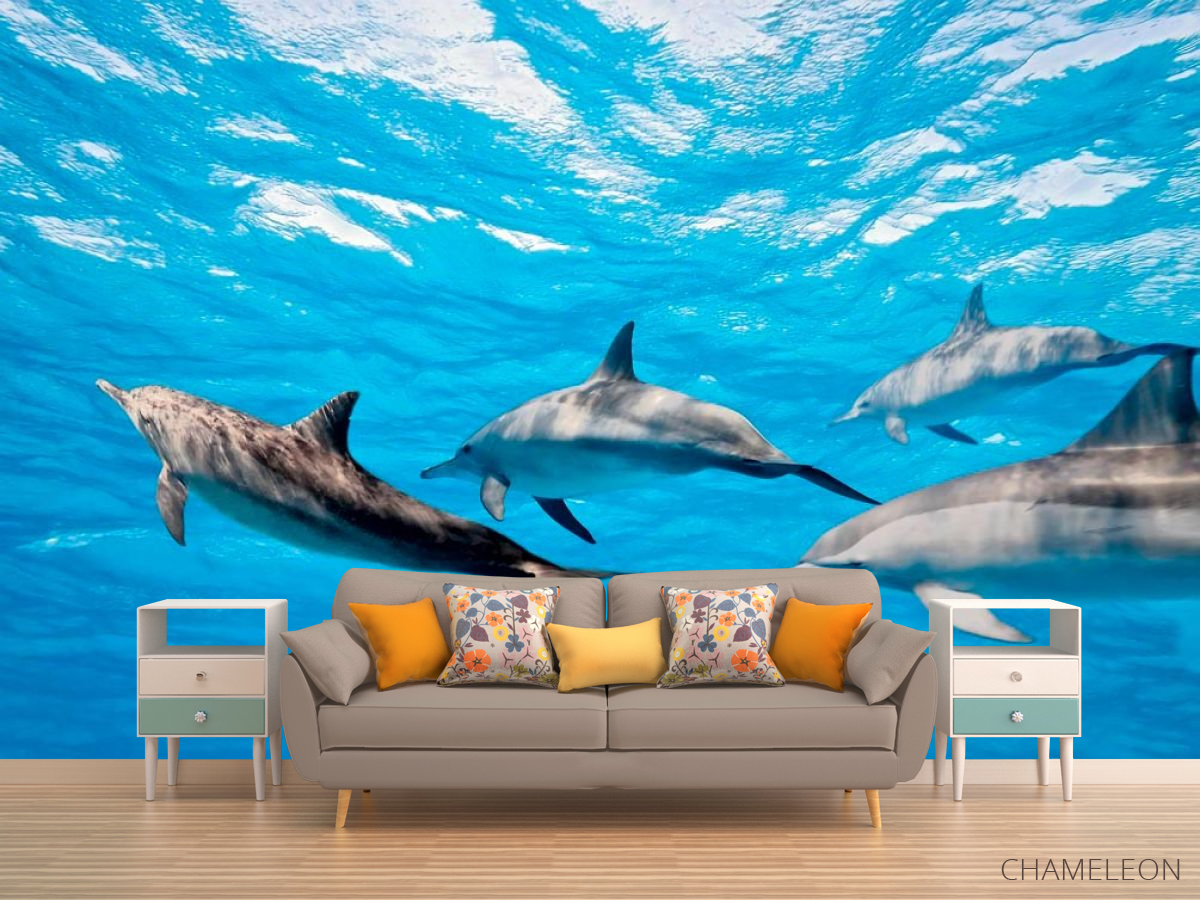 Самыми умными и милыми животными, которые лечат множество человеческих болезней по праву являются дельфины. От них исходит солнечная, добрая энергетика, они нас прекрасно понимают без слов. Фотообои Дельфины – это возможность придать вашему дому уют и теплую атмосферу. Изображения милых дельфинчиков будут поднимать вам настроение каждый день! Они прекрасно дополнят интерьер любой комнаты: кухни, спальни, гостиной и станут своеобразным оберегом вашего дома. Обои изготовлены из качественных материалов, безопасны и стойки к небольшим повреждениям. Рисунок выполнен ярко и красочно, краска не выгорает и будет радовать вас на протяжении нескольких лет. Вы можете также выбрать бумажную или флизилиновую основу для фотообоев Дельфины.