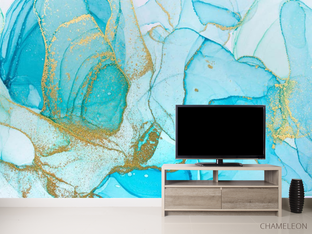 «Фотообои Голубой fluid art с золотом», (арт. 29969) - купить в интернет-магазине Chameleon