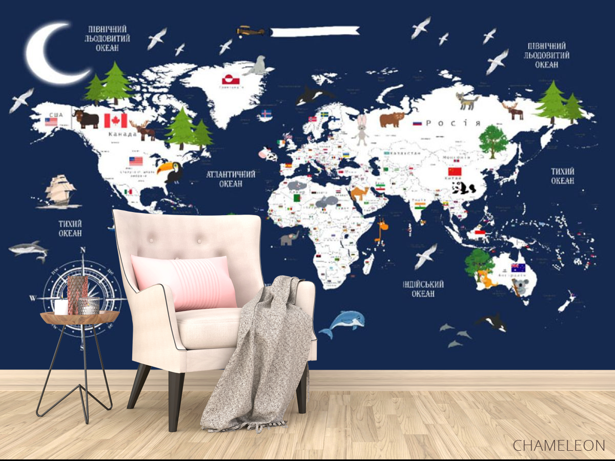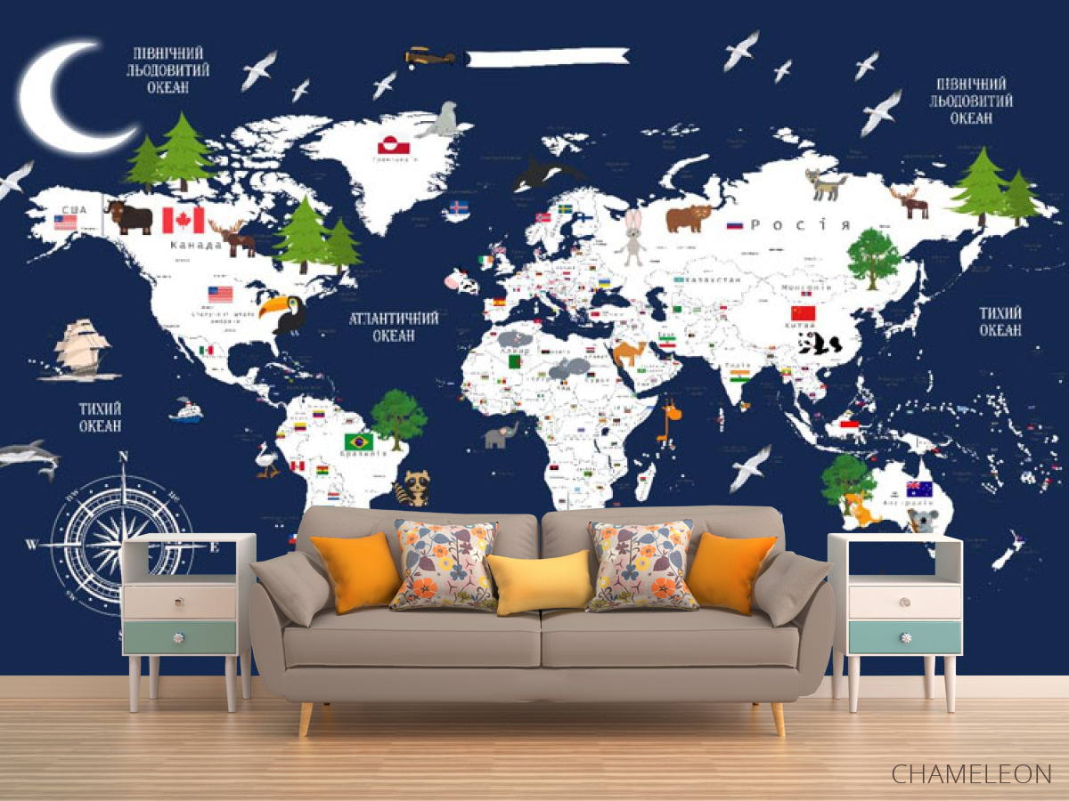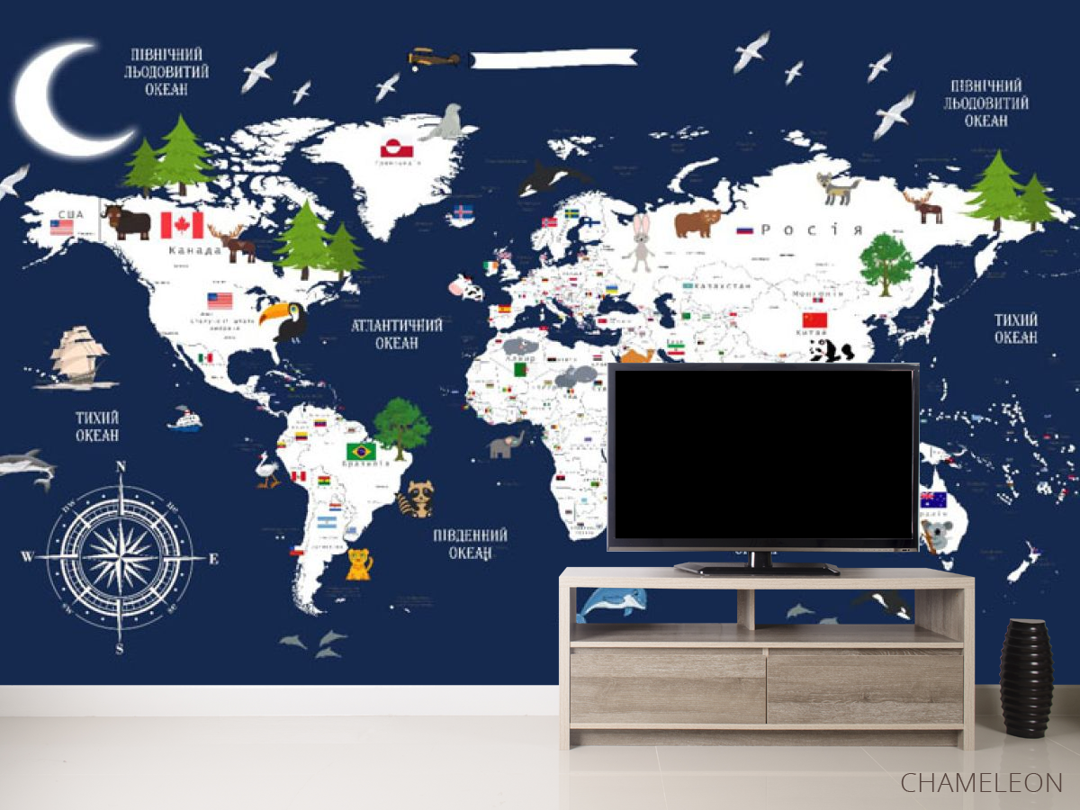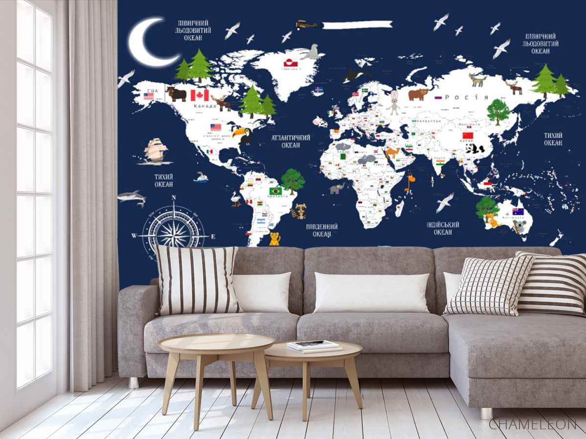 Фотообои Синяя карта детская на украинском языке с компасом 29972_1