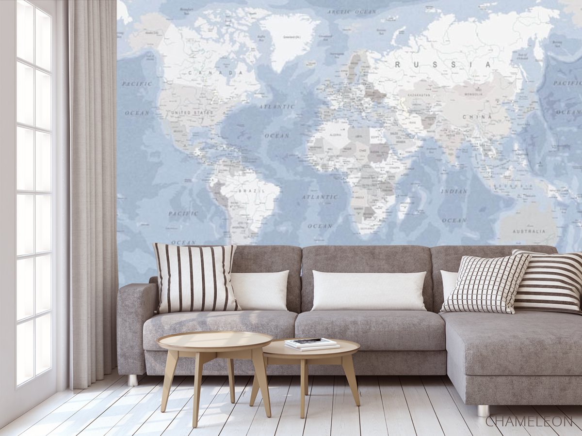 Фотообои карта мира являются очень хорошим выбором как для дома (в гостиную, рабочий кабинет или кухню), так и для других зданий (в школу, ресторан или салон красоты). Они выглядят роскошно, имеют стильный дизайн и отлично подходят под любое оформление комнаты. Современные фотообои на стену производятся из надежного материала, который не портится и не царапается. Изображение - это полностью безопасная краска, которая не вызывает аллергии, а также остается красивым в течение многих лет. Вы можете уверенно использовать обои, которые украсят любое помещение. Купить стильные и оригинальные фотообои с картой мира можно в интернет-магазине Chameleons.