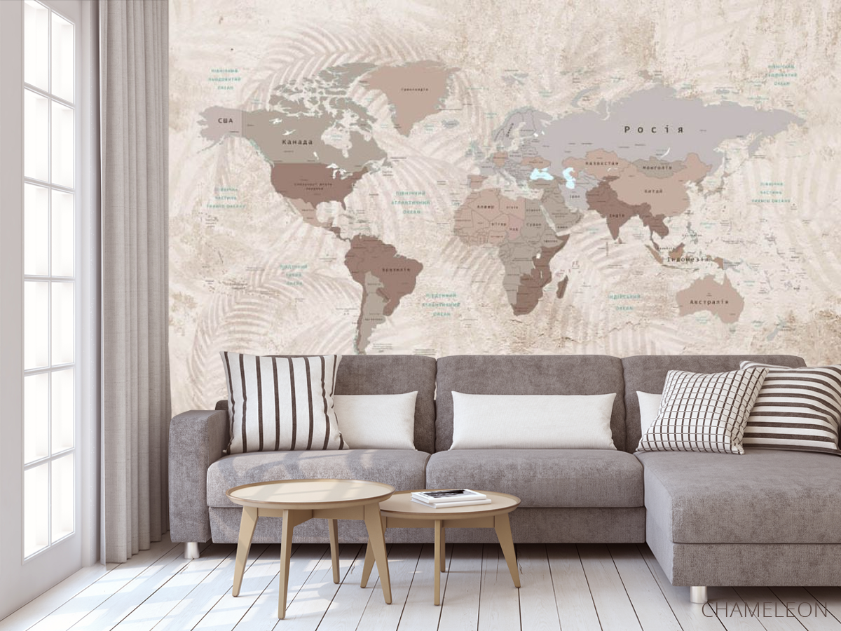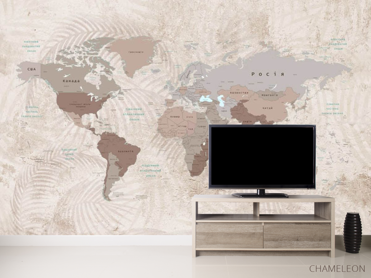 Фотообои карта мира являются очень хорошим выбором как для дома (в гостиную, рабочий кабинет или кухню), так и для других зданий (в школу, ресторан или салон красоты). Они выглядят роскошно, имеют стильный дизайн и отлично подходят под любое оформление комнаты. Современные фотообои на стену производятся из надежного материала, который не портится и не царапается. Изображение - это полностью безопасная краска, которая не вызывает аллергии, а также остается красивым в течение многих лет. Вы можете уверенно использовать обои, которые украсят любое помещение. Купить стильные и оригинальные фотообои с картой мира можно в интернет-магазине Chameleons.