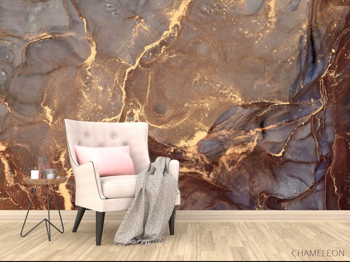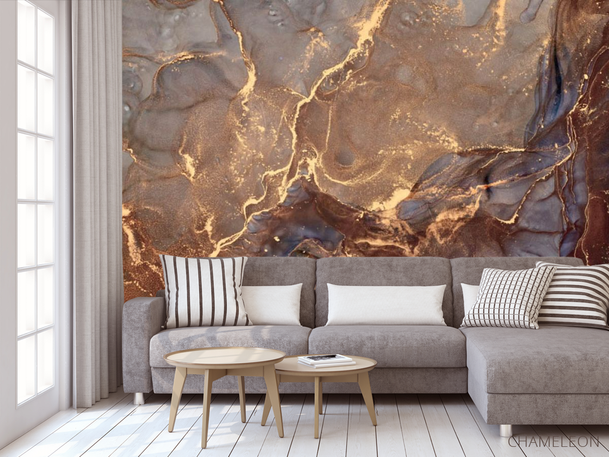 «Фотообои Золотой fluid art с коричневым», (арт. 30227) - купить в интернет-магазине Chameleon