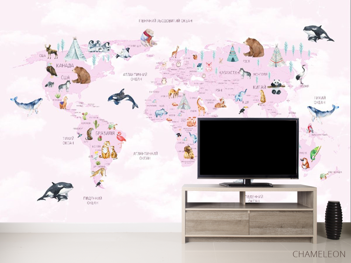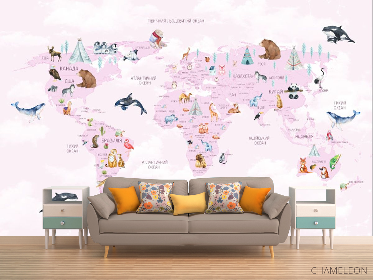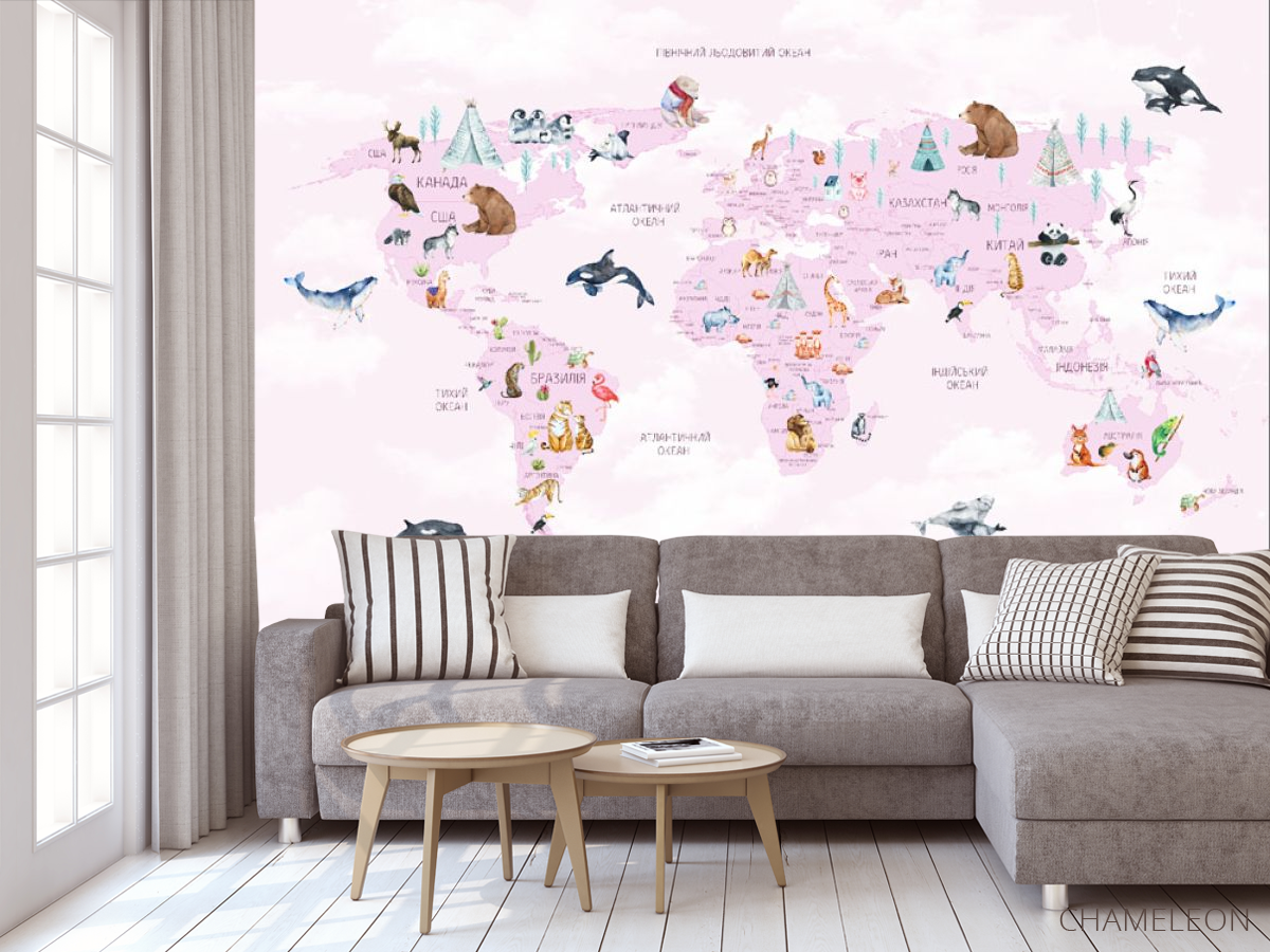 Фотообои Карта детская с облачками на украинском языке в розовом цвете. 30289_2