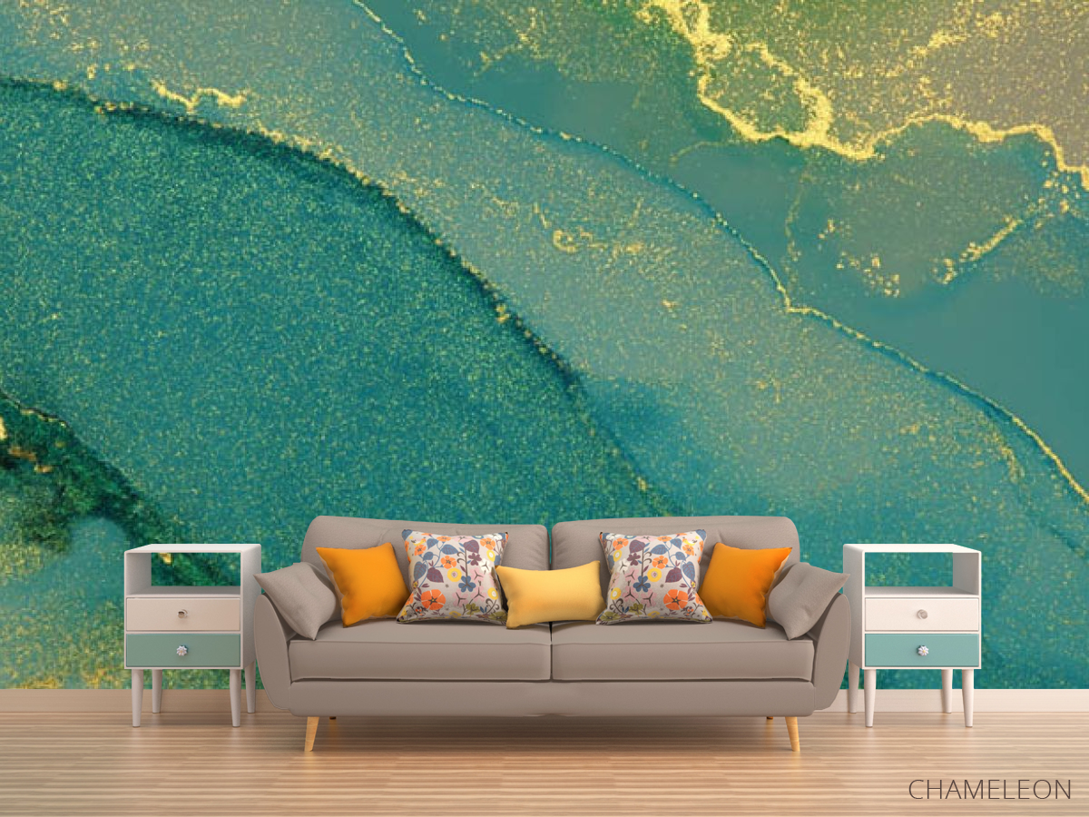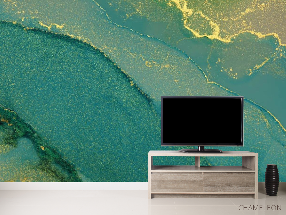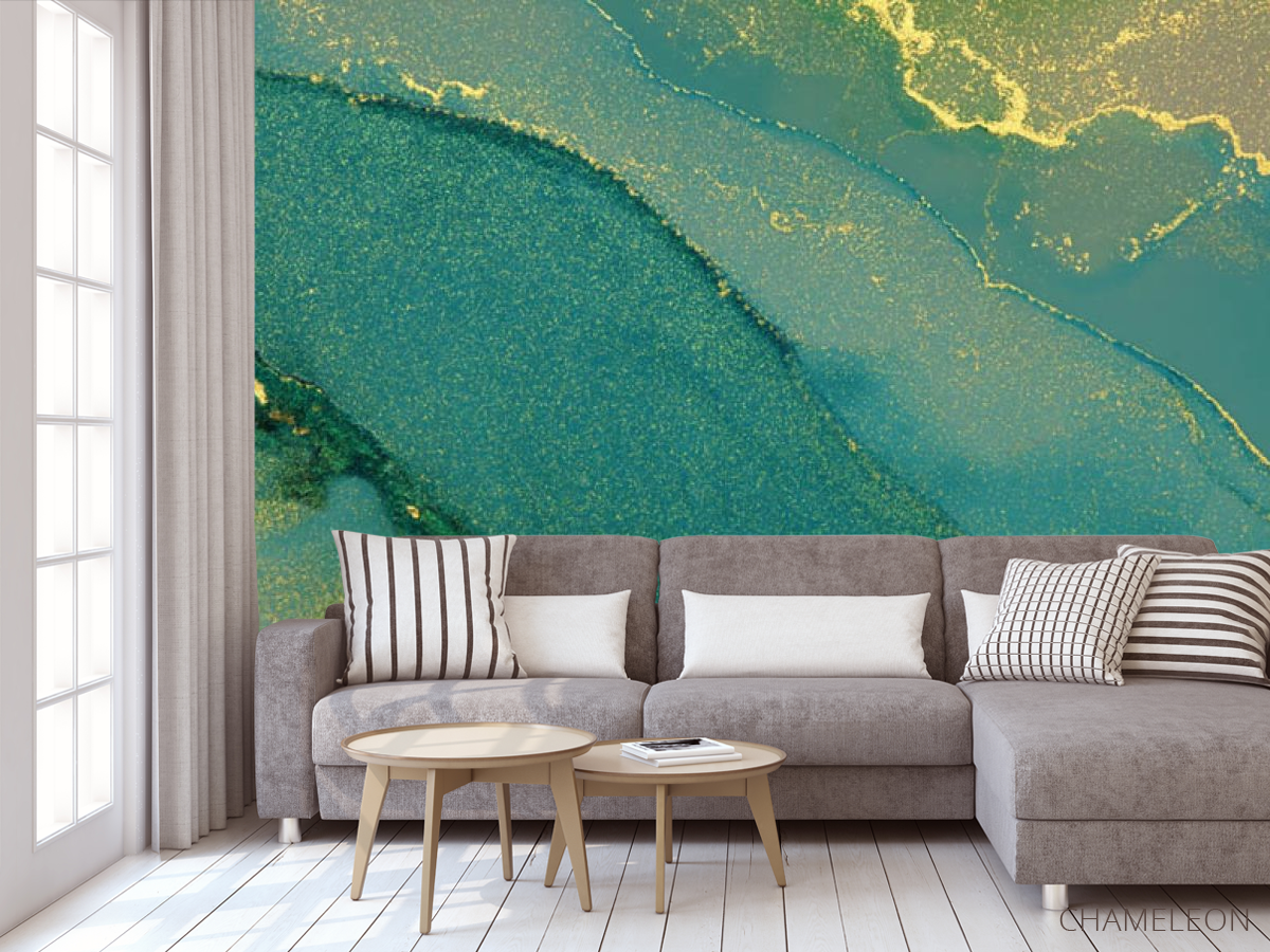 «Фотообои Зелёный fluid art с золотом», (арт. 30443) - купить в интернет-магазине Chameleon