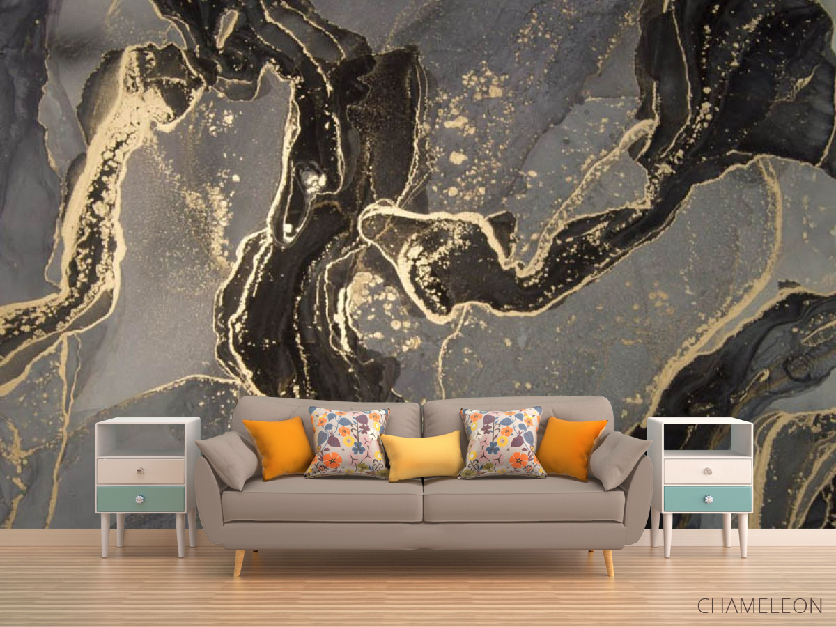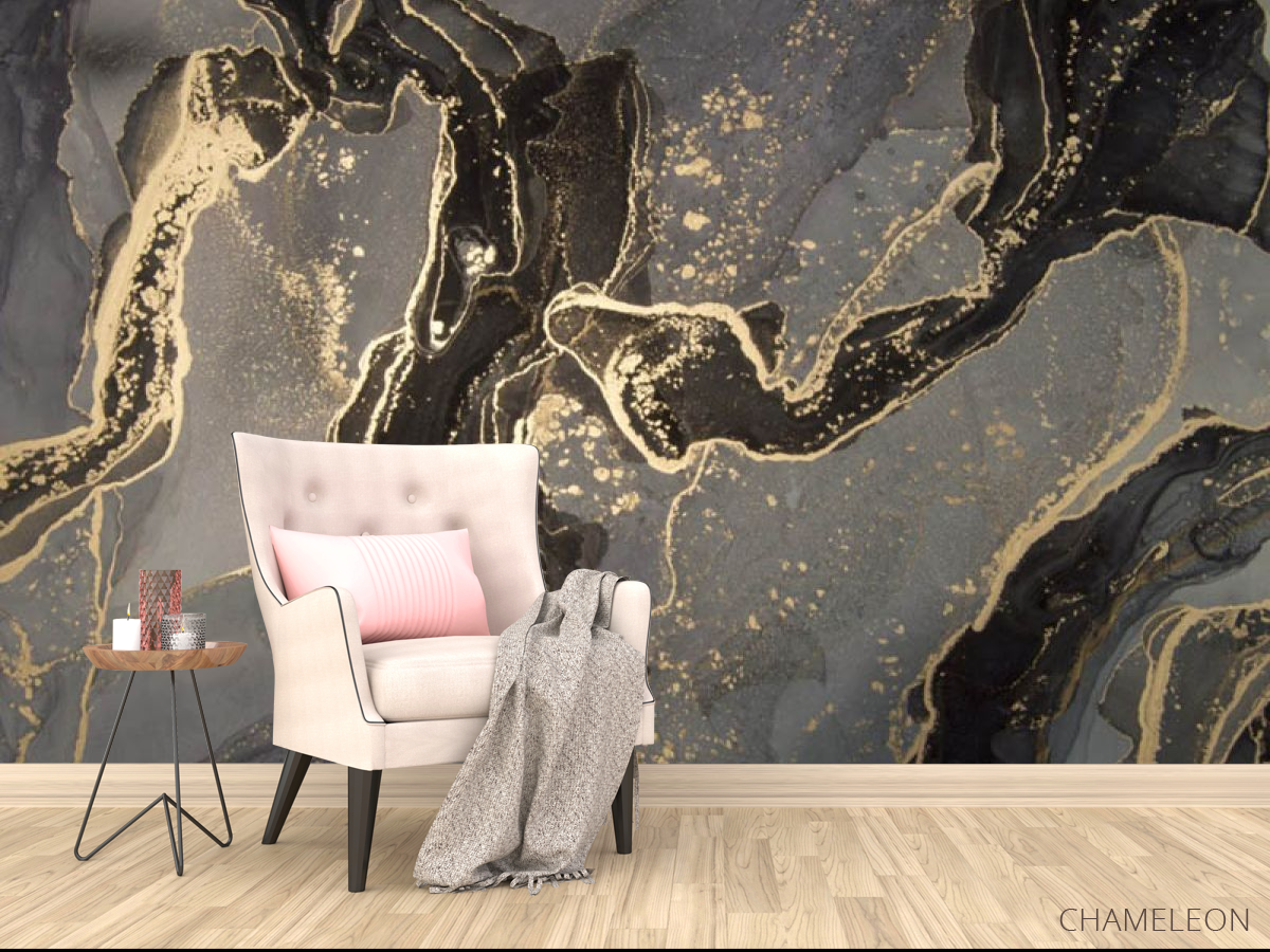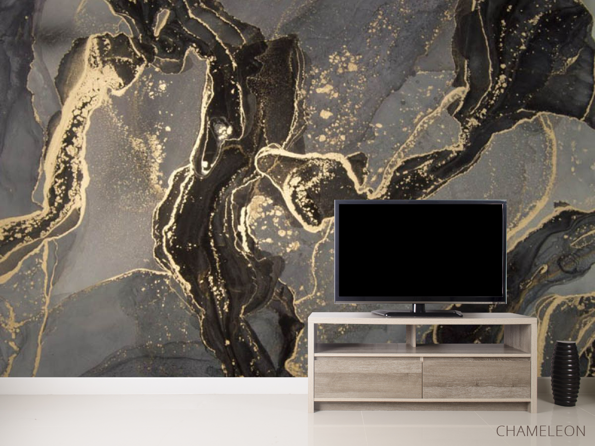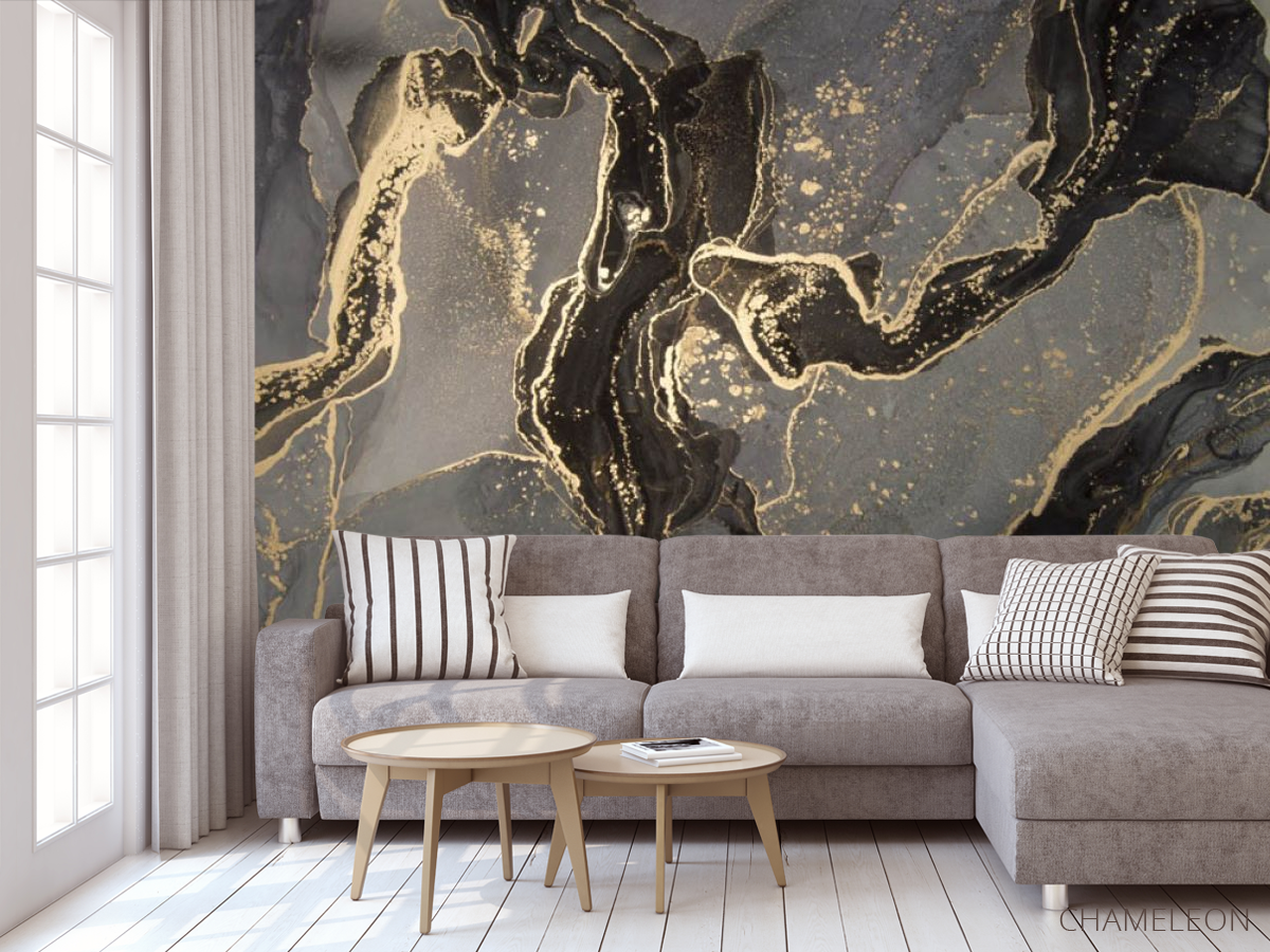 «Фотообои Чёрный fluid art с золотом», (арт. 30444) - купить в интернет-магазине Chameleon
