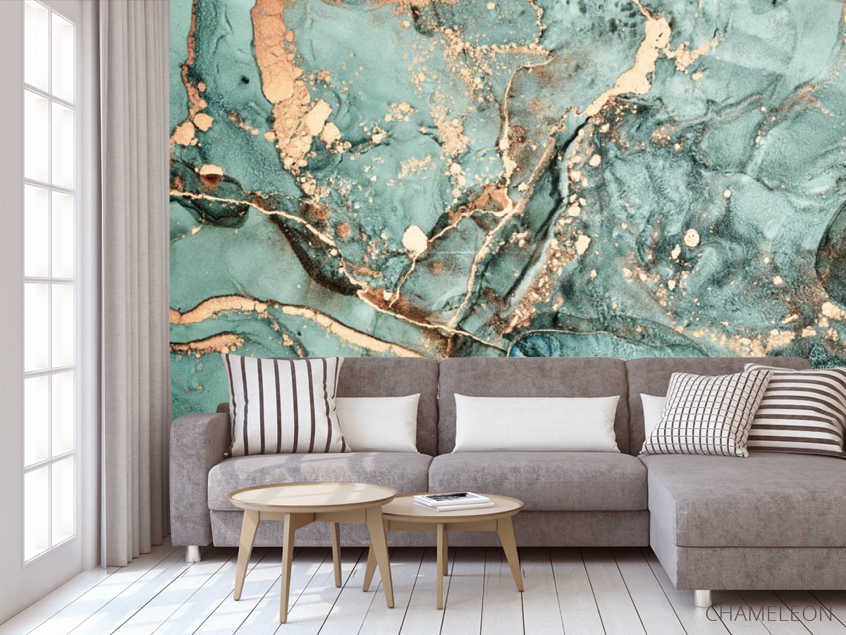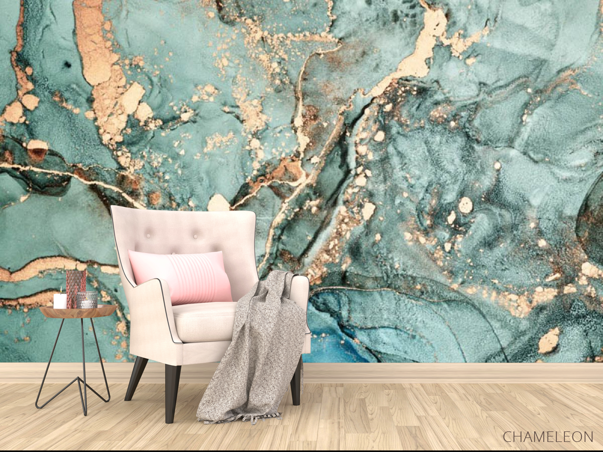 «Фотообои Бирюзовый флюид с золотом», (арт. 30788) - купить в интернет-магазине Chameleon