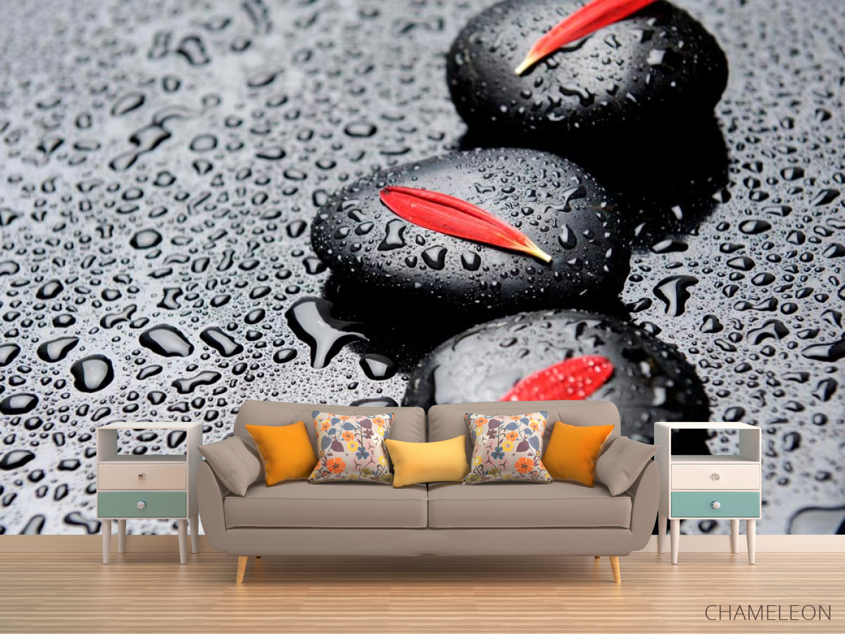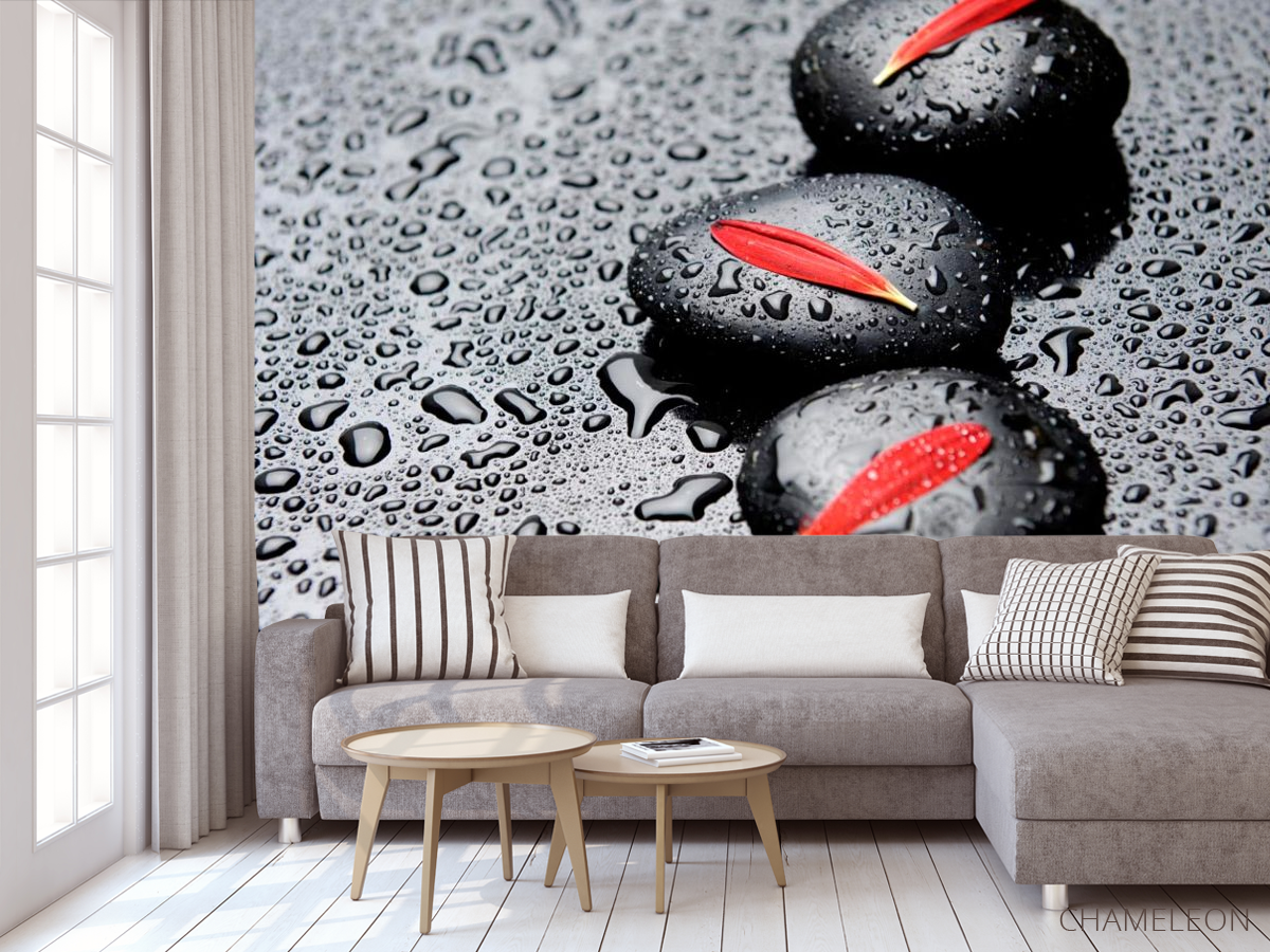 Фотообои Лепестки, камни, капли
