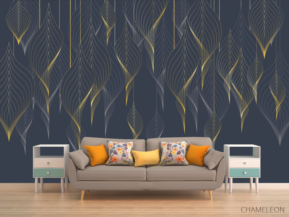 «Фотообои листья в стиле line art», (арт. 30951_1) - купить в интернет-магазине Chameleon
