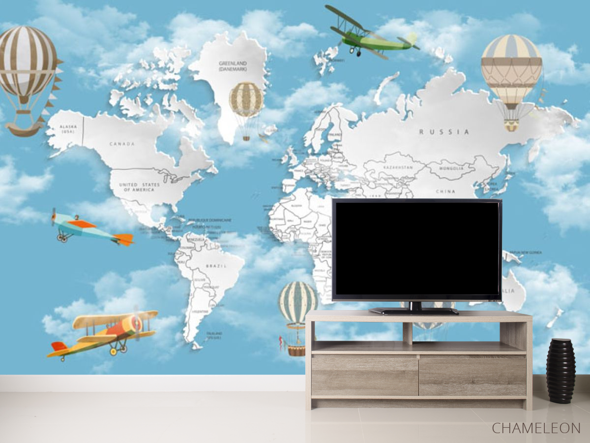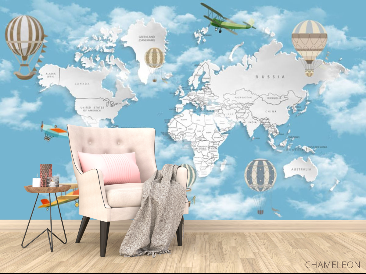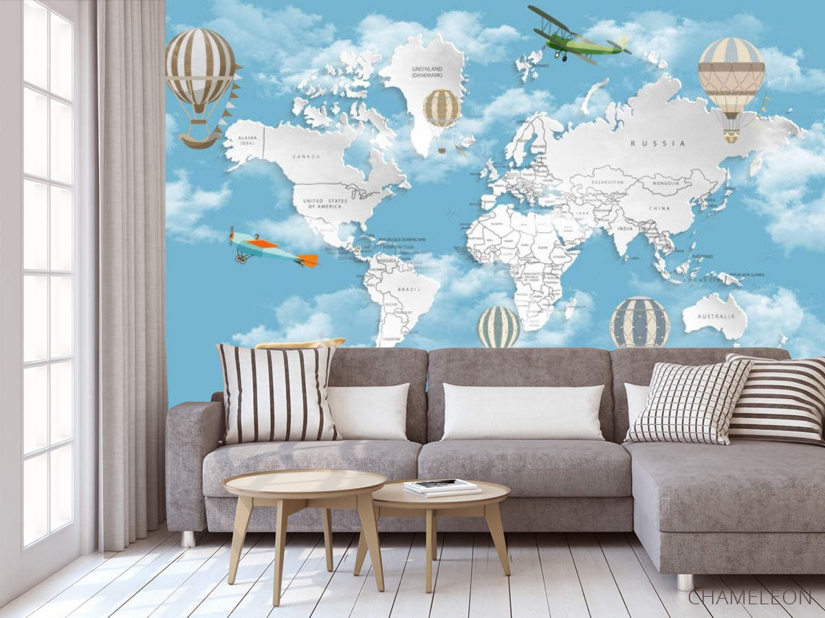 Фотообои Голубая карта с облаками на английском 30956
